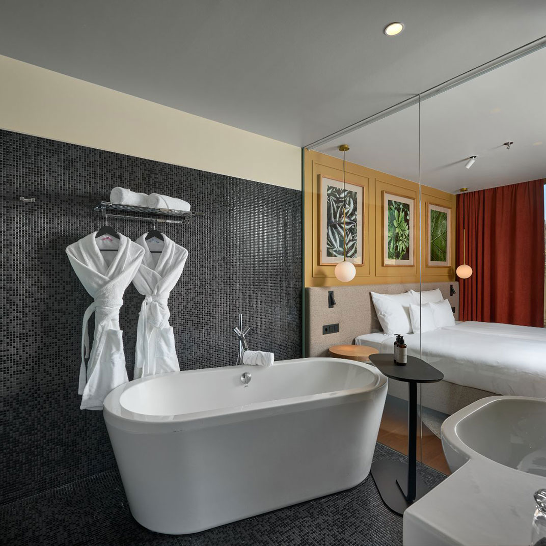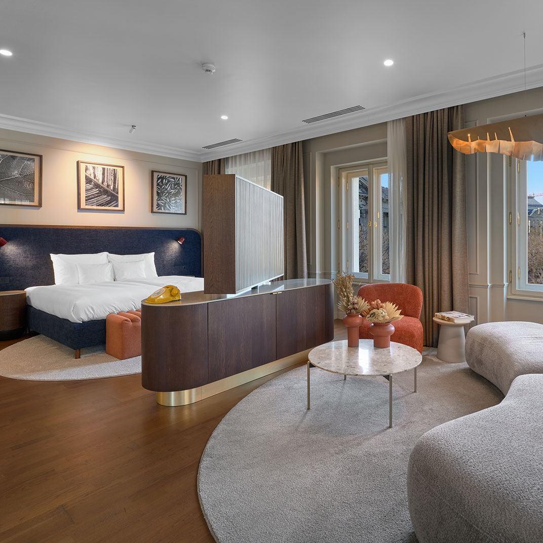The rooms are impressively spacious—far larger than typical city accommodations—and are thoughtfully designed to provide an exceptional level of comfort. High-end modern amenities blend seamlessly with nostalgic touches, such as vintage telephones, adding character and charm.
