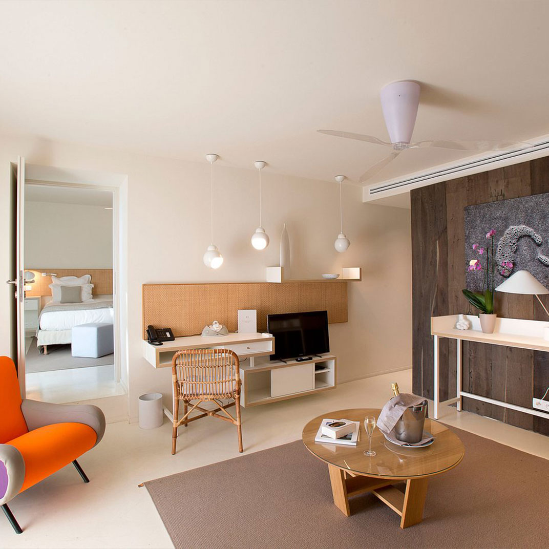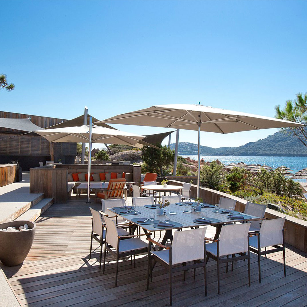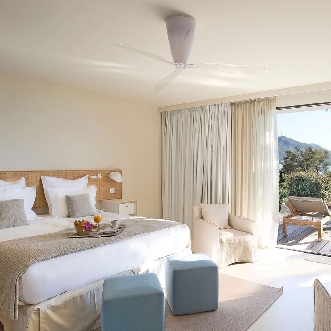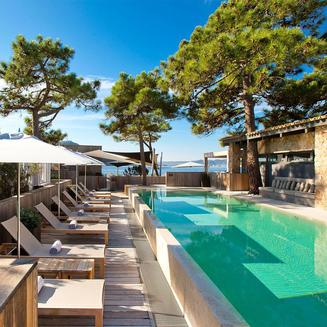 On Corsica’s south-east coast, La Plage Casadelmar makes the most of its setting, a sweep of pale sand framed by pine forest and sea. Its low-slung architecture, built from oak, stone, and glass, blends into a landscape of pines and pale sand. Rooms are bright and minimal, a few steps from the water’s edge, while the restaurant serves Mediterranean dishes under a shaded deck that catches the sea breeze. Days move easily between the terrace restaurant, the pool, and the calm of the bay beyond.