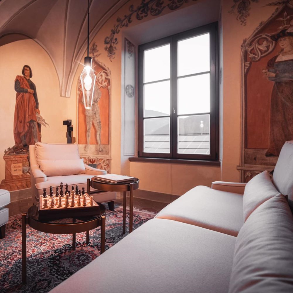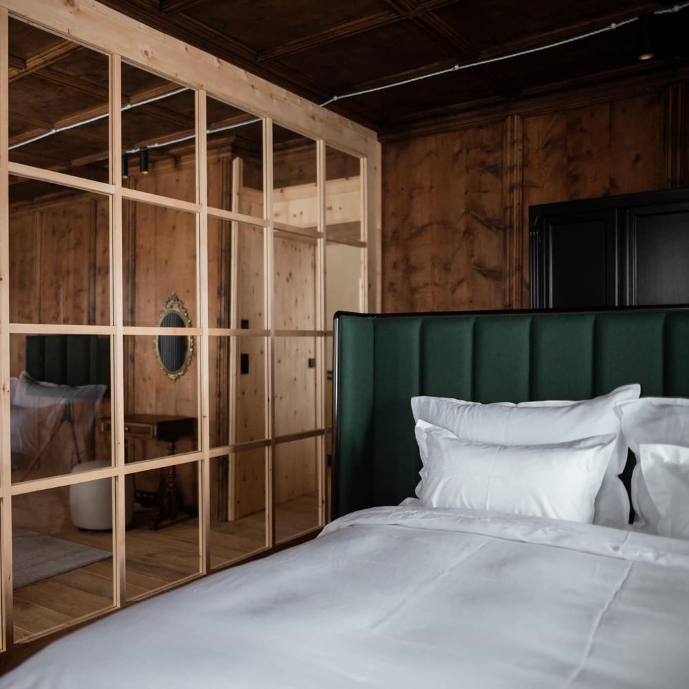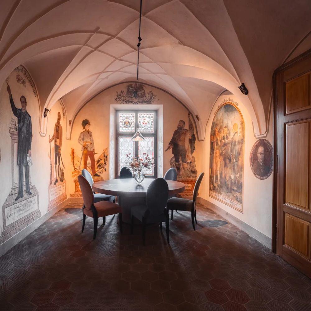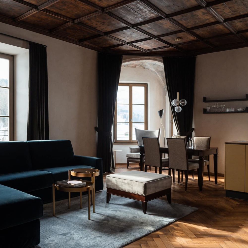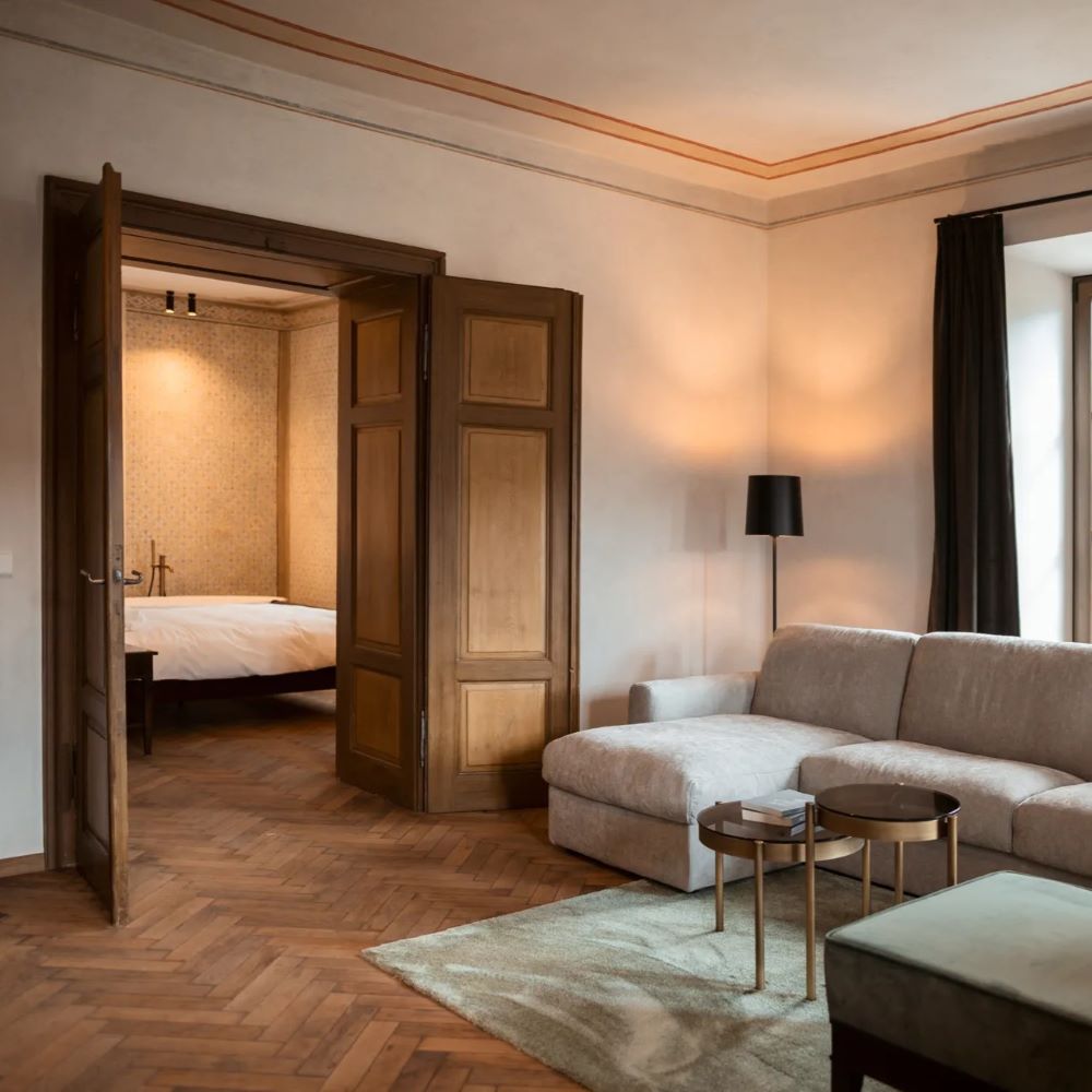In South Tyrol’s Val Pusteria, Castel Maurn turns a centuries-old palace into an eight-suite retreat where frescoed ceilings, vaulted halls, and 18th-century floors meet clean modern lines. Each suite feels residential, with a kitchen, king bed, and generous living space; some add freestanding tubs under painted ceilings. Breakfast arrives in-room, dinners can be privately cooked, and a garden pool and spa invite long pauses after mountain hikes or ski runs on nearby Kronplatz. Under Walter and Sabine’s care, the house has the rare ease of a place that knows exactly what it is.
