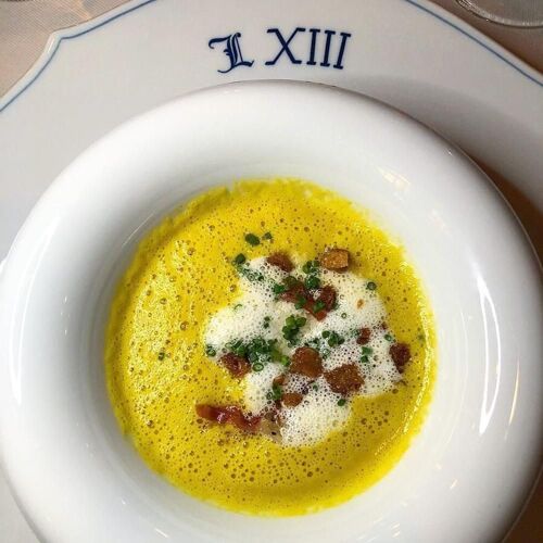 This edifice, steeped in history, stands on the cellars of the former Grands-Augustins convent and it was here on 14 May 1610, an hour after his father King Henry IV had been assassinated, that Louis XIII learned that he was the next king of France… The memory of this rich heritage lingers on in the ornate dining room which sports half-timbers, bare stone, wainscoting, stained-glass and wall hangings, although the profusion of heirlooms is set off by a few cutting-edge details (glazed cellar, modern sculptures). The setting with a sense of occasion is the perfect foil to the food of chef Manuel Martinez, an ardent champion of Gallic culinary classicism. After training at Ledoyen, the Crillon and the Tour d’Argent, the Meilleur Ouvrier de France (Best Craftsman of France) decided to settle in this prestigious establishment to pursue high-flying French culinary traditions. Enduringly popular with regulars, in particular for the excellent eater-friendly lunchtime prices!