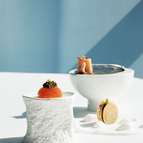 If you’ve never eaten lunch or dinner 120m above ground, you might want to enjoy the experience in this unique dining space in the famous Vasco da Gama tower that dominates Lisbon’s skyline, with its impressive views of the city, the Tagus, and even the magical Troia peninsula (access is via a panoramic lift that takes exactly 50 seconds to reach the top, hence the name of the restaurant). At the helm is Rui Silvestre, a chef with an extensive career working in renowned restaurants and famous for being the youngest chef in Portugal to hold a coveted Michelin star. His cooking is showcased on a single menu entitled “Fauna and Flora” (10, 12 or 14 courses) that is full of surprises thanks to its incomparable flavours and use of local ingredients, as well as spices and citrus notes that result in superb combinations. A good example is his Octopus and beet dish, served with two sauces (yogurt and herbs and another with massala), accompanied by "nan" bread made with garlic butter.