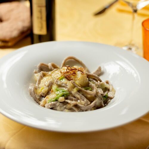 Situated in the upper part of town, surrounded by woods and vineyards, this simple, family-run restaurant is highly inviting. Salumi, meat and cheeses make a frequent appearance on the menu, together with dishes inspired by old regional recipes, such as chisciöi, sciatt and taroz. In summer, make the most of the beautiful panoramic terrace.