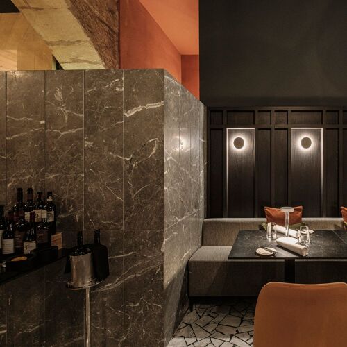 The Rosselli hotel, which houses the restaurant, is located along one of the most elegant streets in Valletta, and the historic and imposing building that hosts it is the best calling card for the stylish dining room awaiting guests. Descend via the lift to the elegant cellar, where you walk past the kitchen before entering into a room with a vaulted stone ceiling and dark, moody décor. Under Grain is inspired by Merchant Street’s former tailor shops and evidence of this theme is all around, from the sewing pattern menu to the clothing displays – and even a pin-cushion bill-holder.