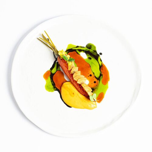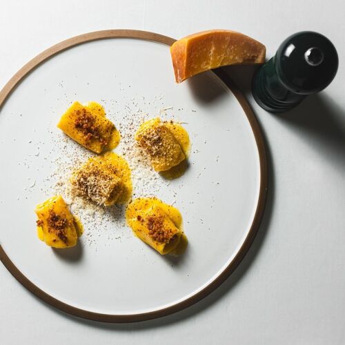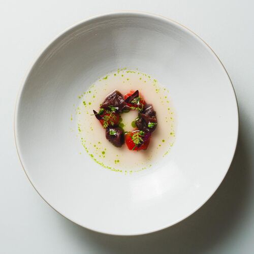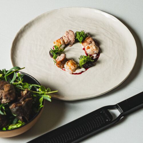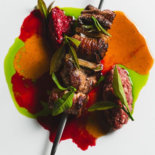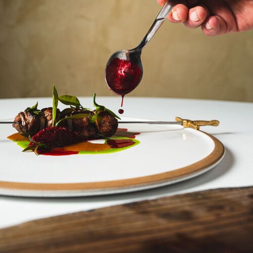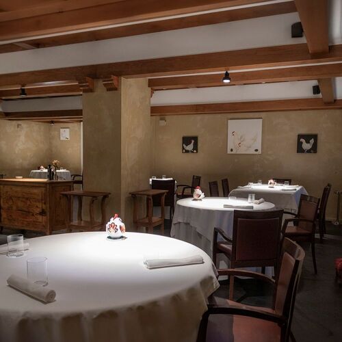 Over 60 years after the restaurant's opening by his grandmother Andreina, Errico Recanati adds another splendid chapter to the family saga. Set in the elegant interiors of a former farmhouse, the excellent service is gracious, reinforcing the cultural roots of a cuisine where game and grilling have always been central. They seem to be telling the story of the only original elements left: the grill and the fireplace! Recanati's distinctive style leads straight to the open fire, grill, and spit, which he masters expertly, infusing these flavors into nearly every dish and finishing them with personal touches, often using home-grown fruits and vegetables. There are two tasting menus: Fuoco and Fiamme; in the latter, the dish “Strawberries and Cream” stands out – as it's not a dessert but a unique creation waiting to be discovered. The wine selection is well-structured.
