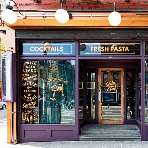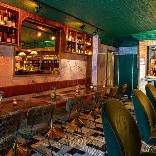 This fresh concept's name is derived from Italy's tradition of hand-crafted sodas; and its spirit from the turbulent Prohibition era. Pass the entry sign to arrive at this mini haven, replete with a mighty vintage vibe—think velvet chairs, gleaming copper accents and stained glass lamps.