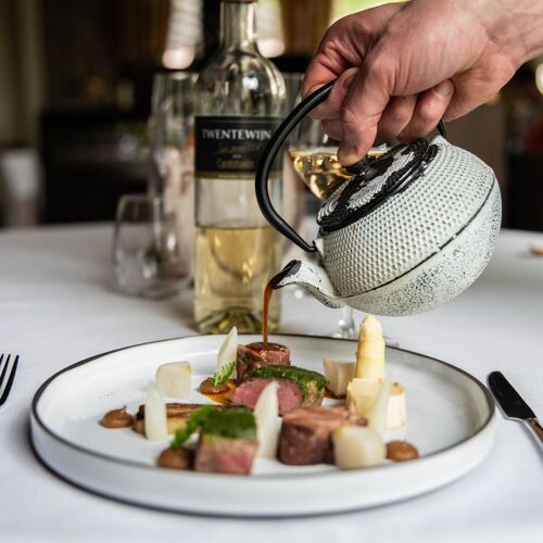 Carelshaven has been providing comfortable overnight accommodation since 1772. This elegant restaurant is located on the splendid Twickel Castle estate, and its leafy terrace overlooks the grounds. The chef tends his on-site kitchen garden, incorporating its bounty into fine French dishes that are plant-forward and include influences from around the globe. By enriching his duck jus with mole, he imbues duck breast with spicy-sweet nuances; textures of kumquat give the sweetbreads an exquisite twist – each plate is full of surprises.