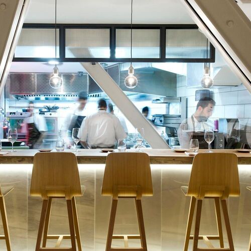 Bilbao is not an easy place in which to make a name for yourself when it comes to food, however it is here that chef Álvaro Garrido decided to set up shop in a discreet building along the estuary, opposite the Ribera market. The pleasantly surprising interior decor of this restaurant, which owes its name to a former mine entrance that once existed beneath the building, features an open kitchen and a fusion of stone and wood (the bar is a single piece of oak) that combine with cutting-edge designer detail. Ably supported by his wife Lara Martín, the chef conjures up innovative cuisine with a hint of fusion influence on a single tasting menu (choose between a shorter and longer version). The cuisine is overtly seasonal, championing ingredients sourced from local suppliers, something that is strongly visible in dishes such as the seasonal tuna with codium or the delicious cod tripe with a smoked salsa and oyster mushroom. Take a seat at the counter to watch the chefs hard at work.