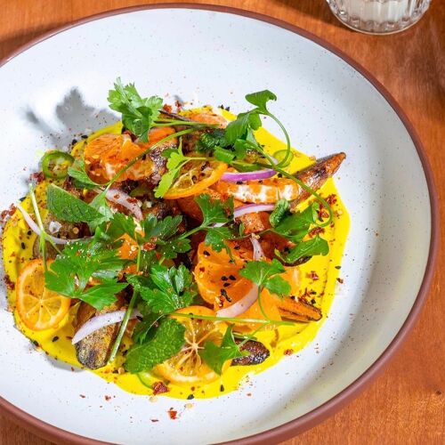 "We are entirely vegan and source all of our produce from independent, organic farms in Pennsylvania, New Jersey and Delaware. We practice total utilization with our fermentation and preservation program using our waste in creative and delicious ways. We’ve also worked with local producers to utilize their waste or excess, using spent yeast from a local brewery to make garum, tomato seconds to make tamari and spent sunflower seeds from a local oil mill to make miso."