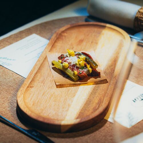 Three hours pass in a flash at this intimate little restaurant, which is proudly run by a friendly couple. Dinner starts at 7pm, with Fanni welcoming guests and looking after their every need. Dávid, meanwhile, is behind the scenes preparing a very personalised 10-course set menu that combines classic Hungarian favourites with family recipes and his childhood memories. Dishes have a feel-good factor, from fried bread drizzled with bacon fat followed by mama’s grilled chicken to an isler sponge cake – and Dávid tells their story to the room as he brings them out of the kitchen or finishes them at the table.