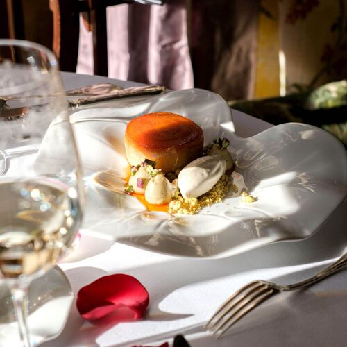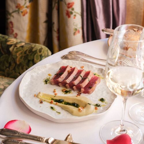 Luxury and tradition, with not a hint of ostentation... and far from the crowds, in the upper reaches of town. On the menu: good sun-drenched French cuisine to relish around the low tables of the superb lounges, or by the plane trees on the peaceful terrace. The chef's specialities include chilled lobster and gambero rosso bisque; vitello tonnato-style tortellini, ricotta, sun-dried tomatoes and taggiasche olives; "Gallici" tiramisu. The spirit of the South of France!