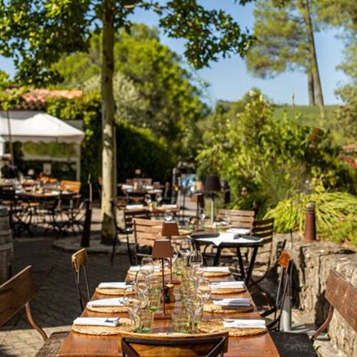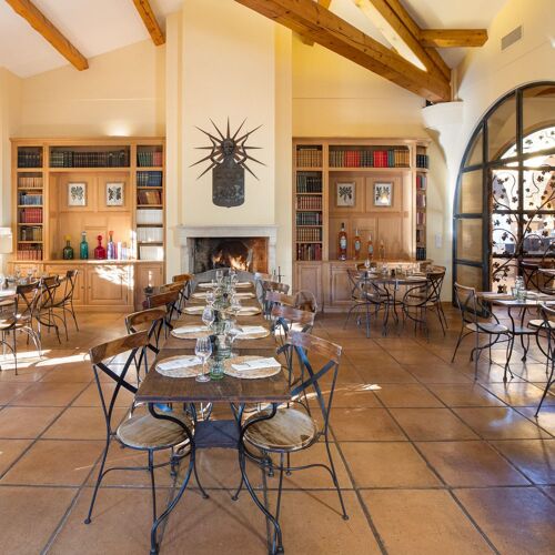 The simple, sun-drenched menu is packed with ingredients that call to mind the surrounding landscape. Crunchy local asparagus; rack of Duroc de Bataillé pork with an Asian twist; apple pastry, almond cream and caramel. These fresh, unfussy dishes are accompanied by wines from the estate. The prices are reasonable, and efficient service is provided by a team who are able to converse with the substantial English-speaking clientele.