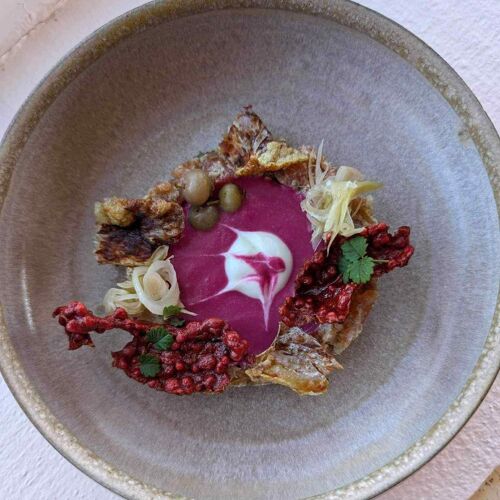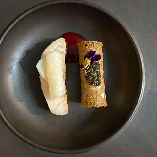 In the countryside, in the Haut-Saint-François (Eastern Townships), this rustic farm is the joint venture of market gardener Yannick Côté and Chef Daniel Charbonneau (formerly of L'Empreinte in Sherbrooke). Chef Charbonneau welcomes the 15 or so guests per service on a covered patio equipped with a brasero, on which he barbecues skewers of venison, sweet onions, and artichokes in sauce diable, accompanied by a glass of local cider, talking guests through the cooking process. Once in the timber-decked dining area with its upcycled furniture, tuck into the single set menu that showcases produce from the local area and from this farm surrounded by market gardens. It's an experience to be savored as much for the food as for the inviting atmosphere and warm hospitality.
