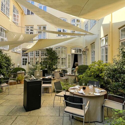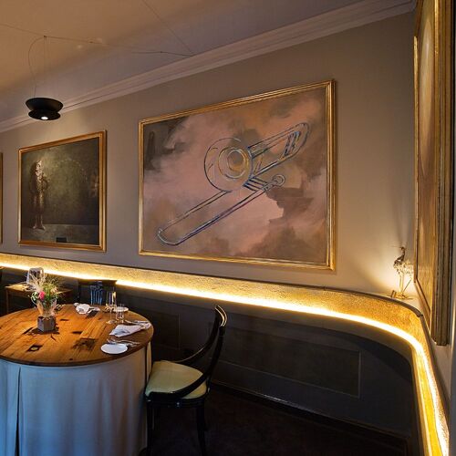 The exterior of this patrician house (1585) located in the heart of Lübeck is just as beautiful and charming as its interior, which is adorned with decorative artworks. Roy Petermann serves up classic cuisine with Mediterranean accents, in which first-rate ingredients take centre stage. There is a set menu (written in beautiful calligraphy) that changes every three weeks, comprising three or five courses , as well as a seven-course surprise menu, which can be pre-ordered for the whole table. Vegetarians are also catered for. The excellent wine list is principally devoted to labels from Germany and Europe, but it does also venture as far as the New World. Professional service befitting the elegant setting comes courtesy of your charming hostess Manuela Petermann and team. The inner courtyard with its lovely verdant terrace is wonderful!