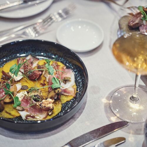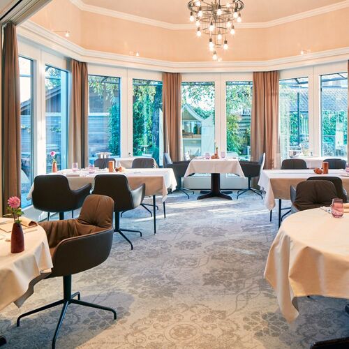 Classic, seasonal and regional food is the name of the game here. Guests can enjoy fine dining and vegetarian options in the Zeitgeist restaurant, as well as house classics, including the signature dish: chateaubriand. Tip: The chocolate cake with coffee is sensational! Alternatively, you can order burgers, pasta etc in the cosy Hirschenstube. Popular terrace for summer meals, plus comfortable guestrooms.