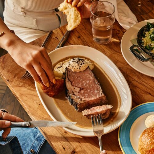 Tucked inside the South Congress Hotel, this festive spot from Chef Michael Fojtasek of Olamaie is always hopping. The menu almost reads like a traditional steakhouse, but this place is anything but, with cooking that is inventive and heartfelt at once. Everything is shareable and seafood-focused starters are a good place to start. Tackle the pile of blue crab claws in a garlic-butter sauce so good you'll be sopping it up with bread. Meats stray from standard with selections like whiskey-brined pork chop and chicken fried steak with black pepper-dotted white gray. The sides are creative and seasonal with just a hint of nostalgia (we see you, blooming onion), but don’t overlook the sensational seasonal vegetables.