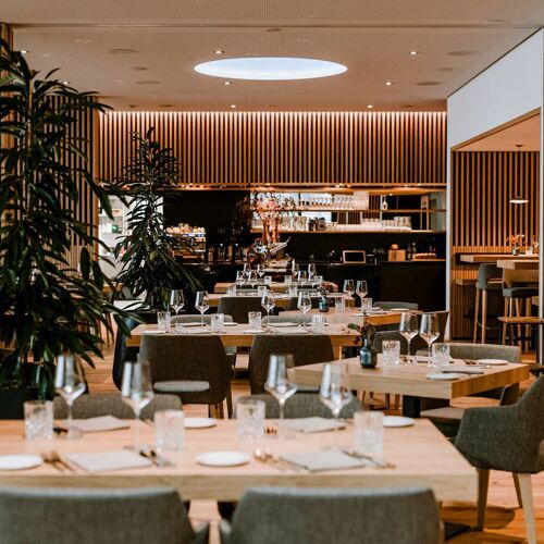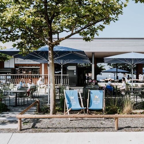 Right by the lake, complete with a small harbour, this modern, low-rise building stands next to the traditional Krone restaurant after which it is named. Inside, an upscale contemporary decor with clean lines welcomes diners; outside, the terrace beckons. As for the food, the good à la carte selection of Mediterranean, French and regional dishes has a pronounced emphasis on local, seasonal ingredients, such as Thurgau rainbow trout and salmon from Lostallo. In addition, there are two three- or five-course set menus, one of which is vegan. The extensive wine list features over 160 labels. For a more casual approach, the separate "Krone Easy" self-service and takeaway concept operates throughout the milder seasons.