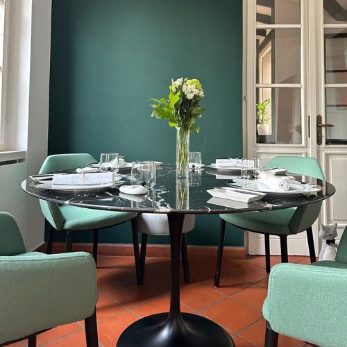 The restaurant, nestled in a peaceful setting just outside the city, is a refuge for the senses: in the evening, the chef's table welcomes up to 12 guests for an intimate and surprising gastronomic experience, while a private room can accommodate small groups of up to 20 people. At the stove, a chef already well-known in Italy reinterprets Italian cuisine with creativity and passion. The service is warm, and the menu is rich in Mediterranean influences. The mascot? A curious and omnipresent gorilla: appearing in photos, as a statue, or even in the butter served with the bread. On sunny days, take a seat on the charming, shaded terrace.