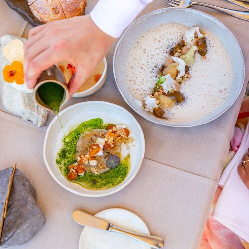 In this small "adults only" boutique hotel, you will find cosy guestrooms and an attractive restaurant with pale wood furnishings. Owners Christian and Nadja Unterlechner put their heart and soul into making you feel at home – it is clear that good service and a rapport with guests are top priorities here. They serve a three- to six-course set menu packed with sophisticated fare that draws on classical culinary foundations and regional ingredients. The food is served on crockery they produce themselves – pottery is one of the owner's passions, wine is another. You can enjoy the judiciously selected pairings or choose from the interesting wine list yourself.