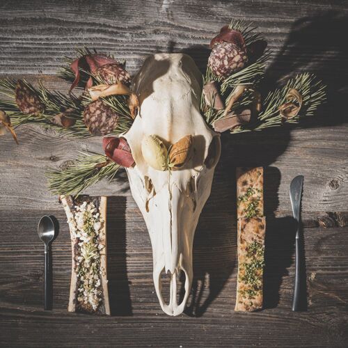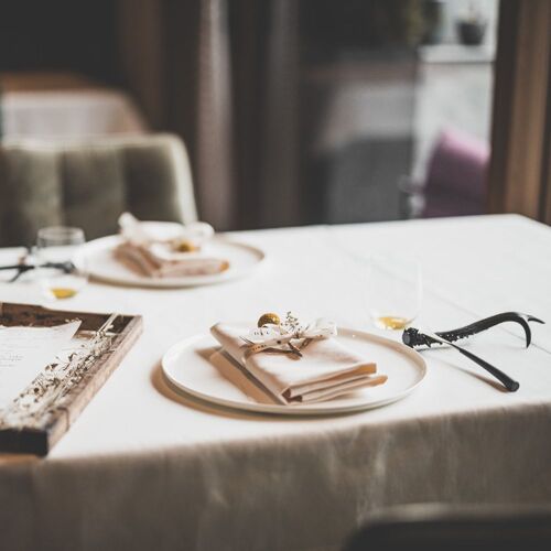 The exclusive little restaurant in the luxe chalet hotel Bergwiesenglück promises a very special culinary experience. If you pre-order it, they serve a game-based set menu, comprising eight small courses made using meat solely from animals hunted by the chef himself – the unusual dishes include, for example, black grouse liver, chamois brain, deer bone marrow or deer tongue. The wine list includes regional and international classics. Optionally you can order the wine pairings devised to accompany the set menu. The friendly and laid-back service is infused with a personal touch. Warm wood and clean lines make for a chic and modern Alpine interior. There are just four tables. A floor-to-ceiling glass façade affords a view of the terrace and the mountains.