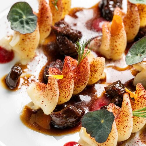 Housed within the Lefay Resort & Spa Dolomiti, an elegant hotel that dominates Pinzolo and is one of the best hotels in the Trentino region, this gourmet restaurant takes its name from the mountain behind the hotel (the Grual). Here, in the evening, chef Matteo Maezza serves his own reinterpretations of typical mountain cuisine inspired by the three different altitudes from which he sources his ingredients. For example, the bottom of the valley (“fondovalle”) is the inspiration for his marinated whitefish from Lake Garda, served with different types of turnip and Mugo pine milk; the Alpine pasture region (“alpeggio”) has inspired the delicious rib of beef with mustard and carrots; while the high mountain area (“alta montagna”) is behind the elaborate saddle of venison with cardoon gratin with a beef marrow and creamed rye crust. There’s also an impressive wine list featuring an impressive selection of champagnes.