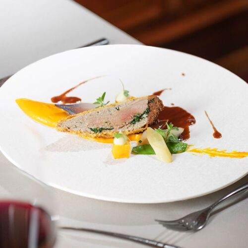 Housed in the Grand Hotel Toplice which stands amid some of the most popular landscapes in Slovenia, this restaurant boasts truly breathtaking views of Lake Bled from its dining room and its outdoor terrace. Here, the chef offers tasting menus of various lengths featuring meat and fish specialities with the occasional international influence, as well as a 4-course option (the Gorenjska selection menu) with a stronger regional focus. On the latter, the array of local ingredients is showcased via a delicious hazelnut crème brûlée served with ice-cream made from cherries soaked in Terrano liqueur.