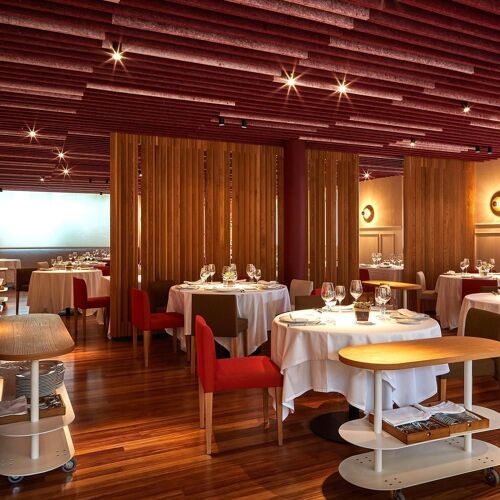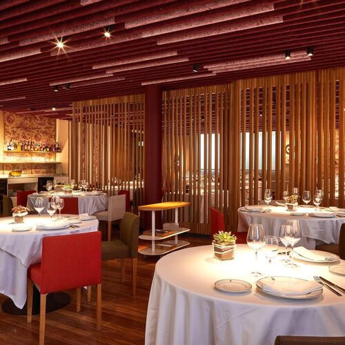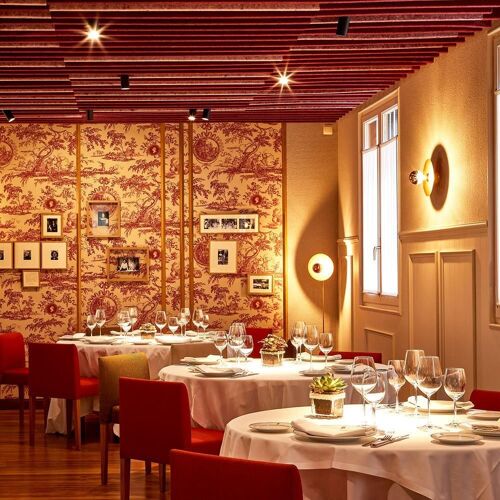 The meticulously appointed dining room here can be considered a temple of traditional Rioja cooking thanks to its respect for flavour and dishes prepared with the minutest of detail. The extensive à la carte, featuring the signature dishes of both Francis Paniego and his mother, is complemented by a daily menu (midweek only) plus a tasting option. We can definitely recommend the famous soft and creamy croquettes, the prawn carpaccio, the lightly battered hake confit (cooked at 45°C), and the Cameros cheese on toast with apple.