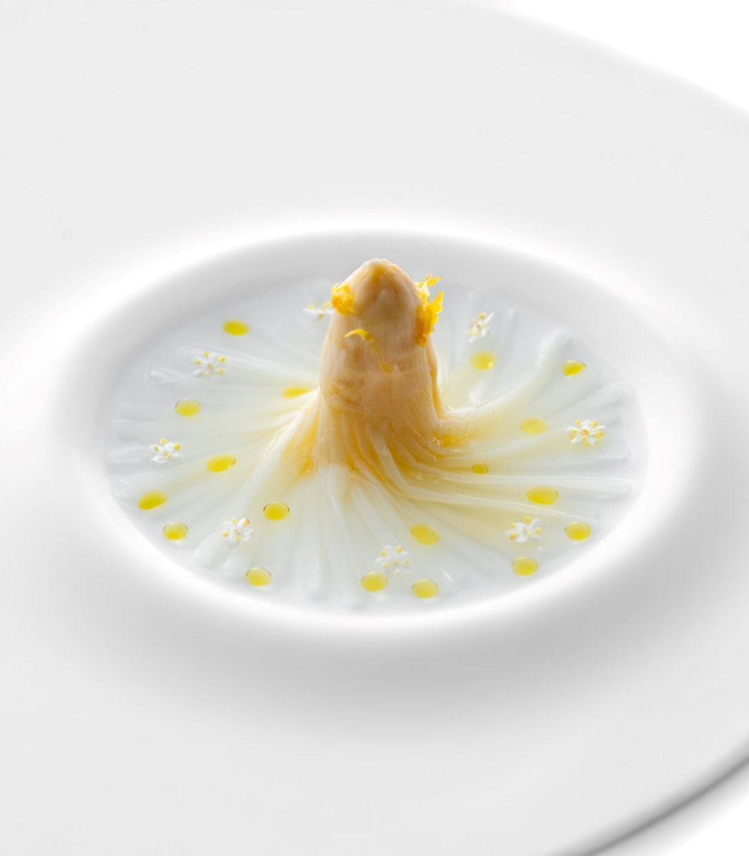 La mesa del chef Artem Estafiev, que ofrece a los clientes una experiencia visual e inmersiva gracias al particular diseño del restaurante, se centra en la fermentación, el contraste de sabores y las texturas extremadamente variadas. Sin duda, una de las cocinas más modernas de Moscú.