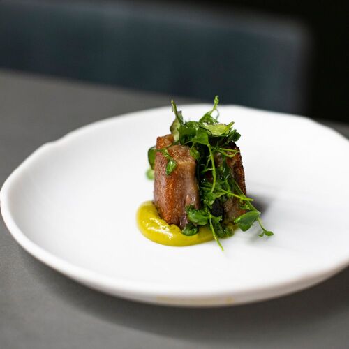 Tiene pocas mesas, por lo que desde su comedor de línea rústica-urbana, tras la zona de barra, se puede ver en directo el trabajo de los cocineros, que trabajan con la cocina abierta a la misma en base a un único menú sorpresa que va evolucionando con la temporada (destaca especialmente el uso de producto marino) y que cuida muchísimo tanto las texturas, bastante cremosas, como los maridajes. ¿Curiosidades? El nombre juega con el origen de los chefs-propietarios, Javier y David, pues uno es de A Coruña y el otro de Salamanca, de ahí que la propuesta sea una fusión de la cocina gallega, la castellana y la catalana. ¡Sirven a todos los comensales a la vez, así que hay que intentar ser puntual!