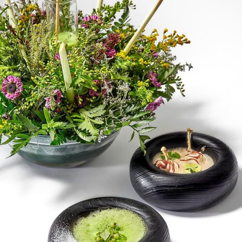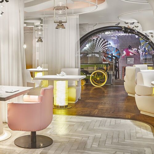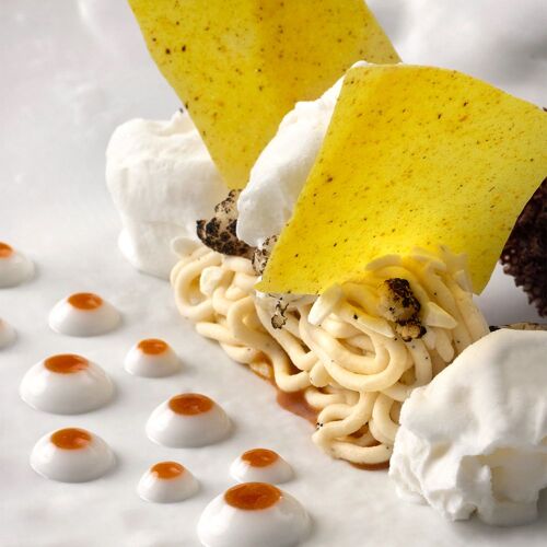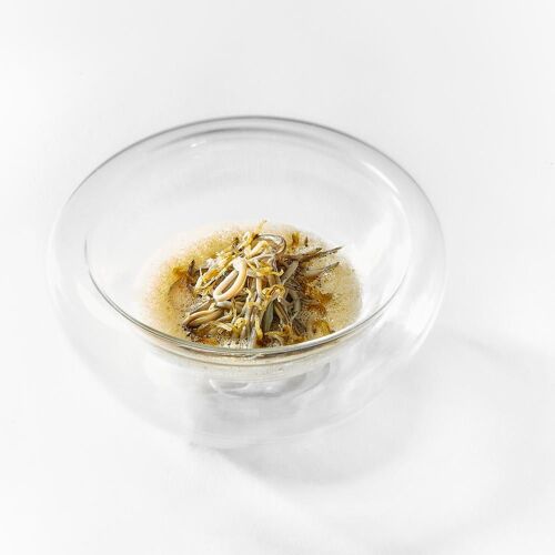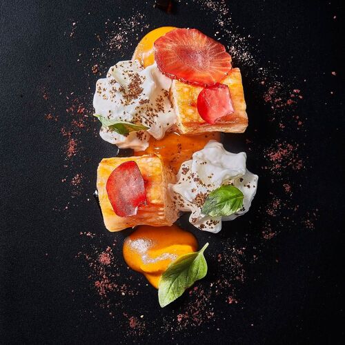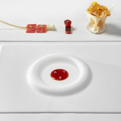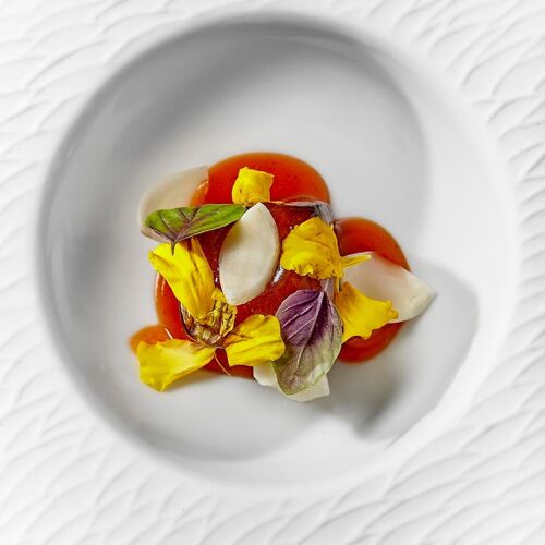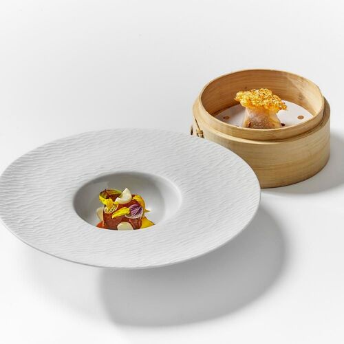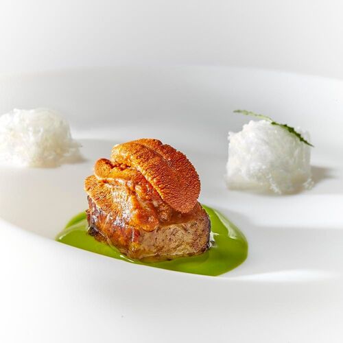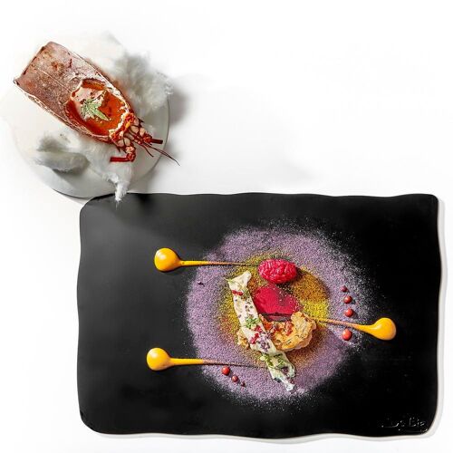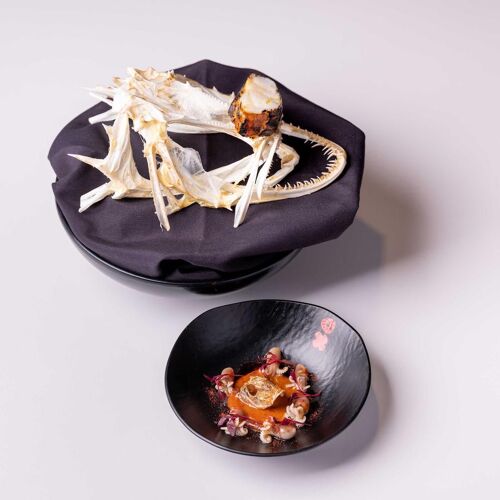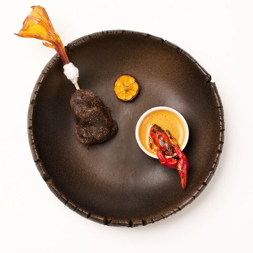 Bogavante gallego amaneciendo en las playas de Goa, Cangrejos emborrachados de fiesta por Jerez, el Minutejo del Agus (un homenaje a las meriendas que siendo niño hacía con su padre)… La hedonista cocina de Dabiz Muñoz, divertida y en muchísimos detalles irreverente, rompe las barreras de la vanguardia gastronómica para entrar en un plano onírico sumamente personal, consiguiendo que el comensal viva una montaña rusa de emociones donde no se le da un respiro al paladar.