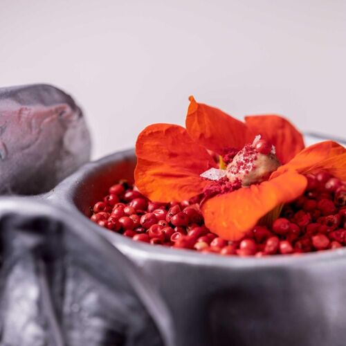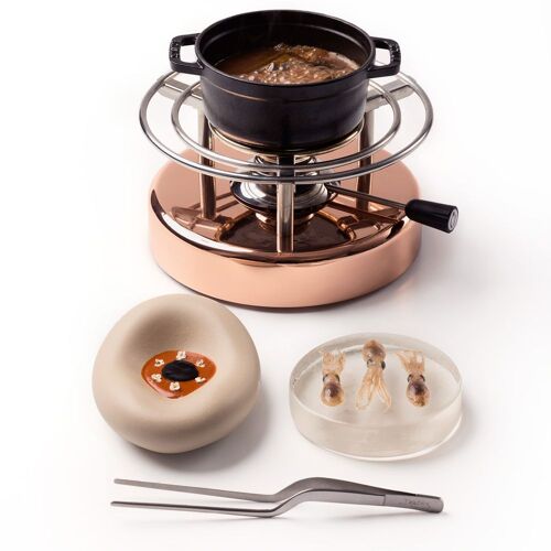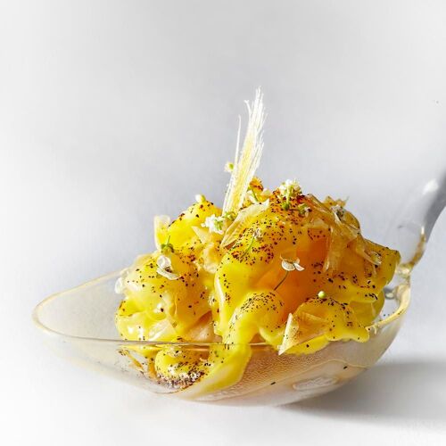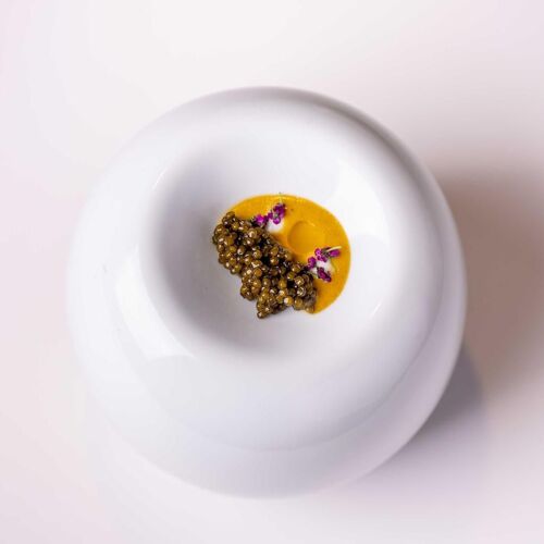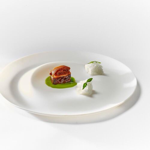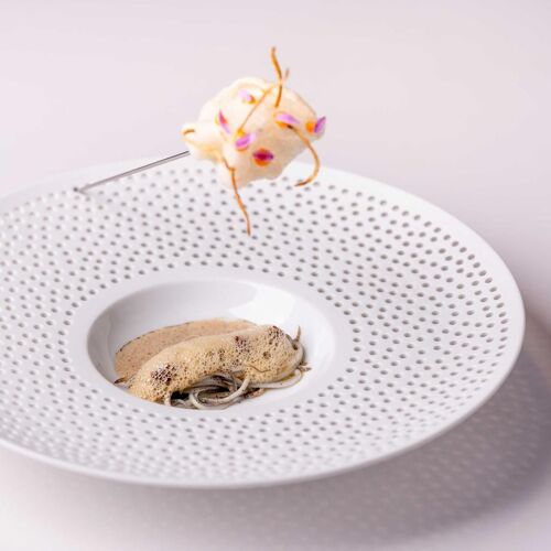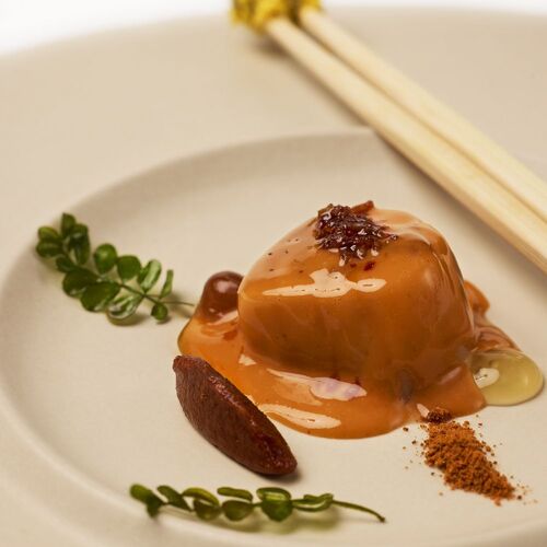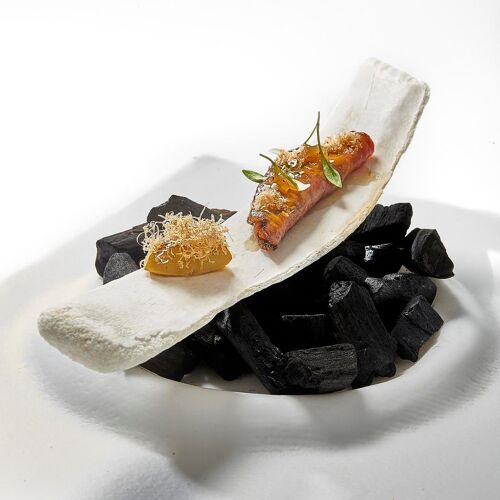 En su llamativo local apuestan por un único menú degustación, llamado La cocina de los cerdos voladores, que nos invita a un espectacular viaje por las distintas culinarias del mundo, con especial incidencia en la fusión asiática pero con el uso habitual de productos nacionales, lo que repercute en unos sabores más reconocibles. Abordando temas como las especies invasoras o el ecosistema pirenaico, trabaja sin limitaciones, combinando ingredientes locales con condimentos exóticos. ¡Debes reservar con mucha antelación!