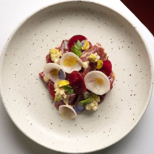 ¿Conoces el significado de Noi? Pues viene a ser, en italiano, el equivalente al pronombre personal "nosotros", un término que habla de lo importante que aquí es el equipo y la idea de un proyecto conjunto. El chef, natural de Puglia (el territorio sureño que ocupa el tacón de la "bota" italiana), defiende una versión contemporánea de la cocina tradicional de su país, alejándose un poco de los tópicos y las pizzas para proponernos un sabroso y actualizado recorrido por las regiones transalpinas. Además, su elegante y cuidado interiorismo recrea... ¡el estilo "italiano pop" de los años 70! Normalmente usan la sala denominada "Verde" para el servicio a la carta y la llamada "Roja" para sus menús, tanto el específico dedicado a la pasta italiana (Pasta) como el tipo degustación (De sur a norte).