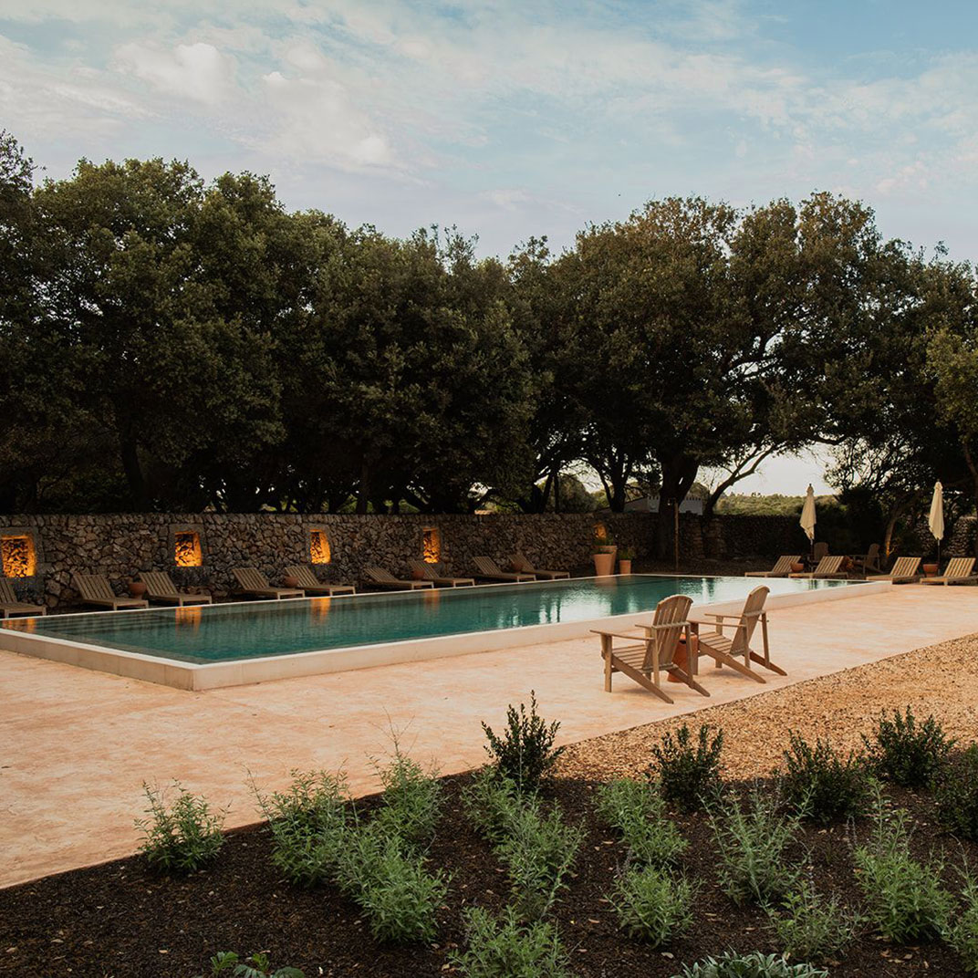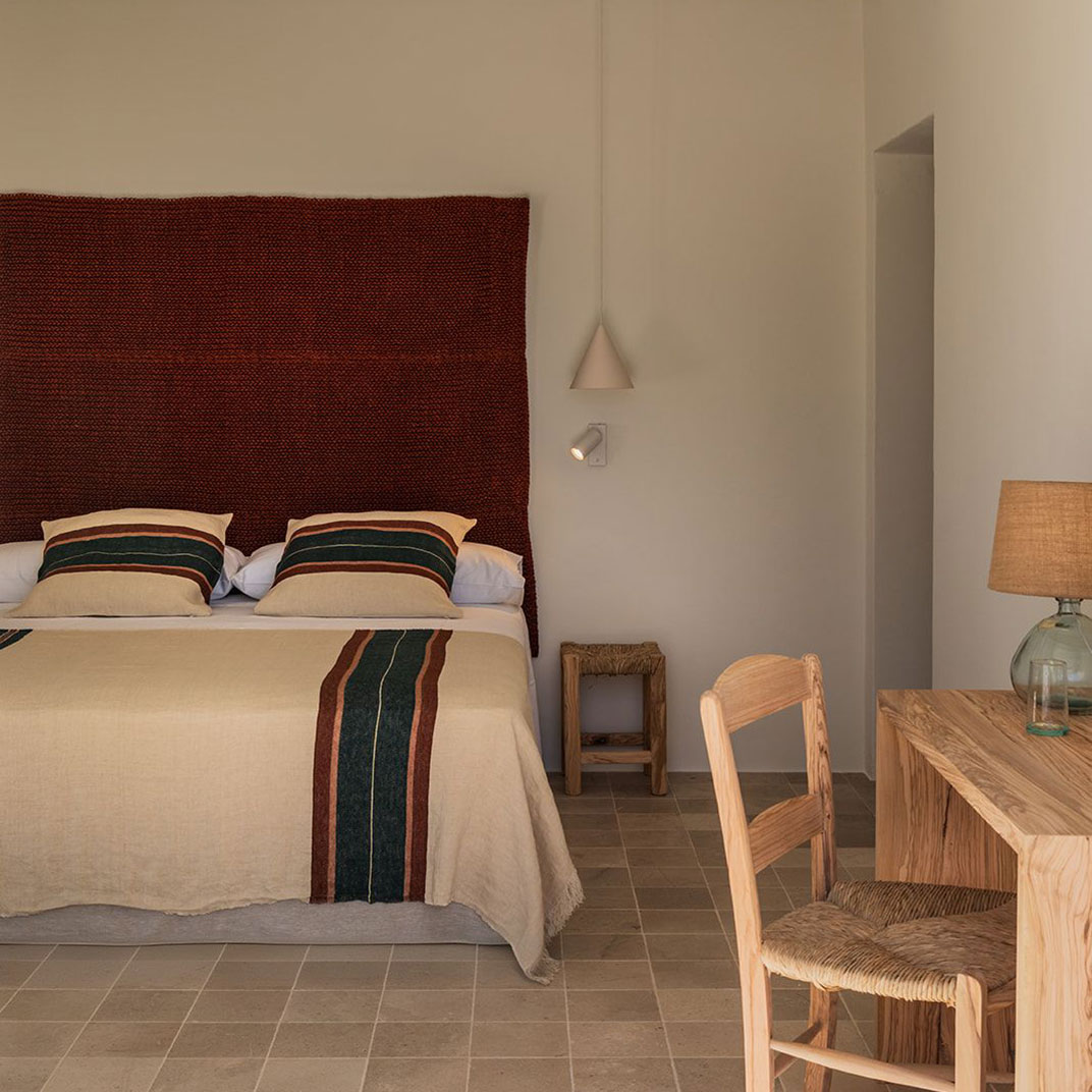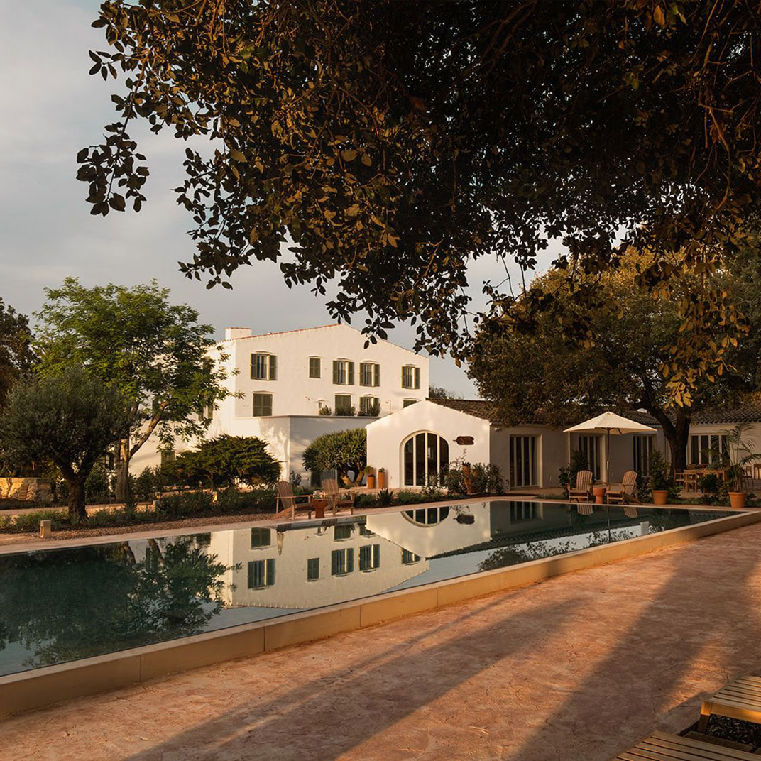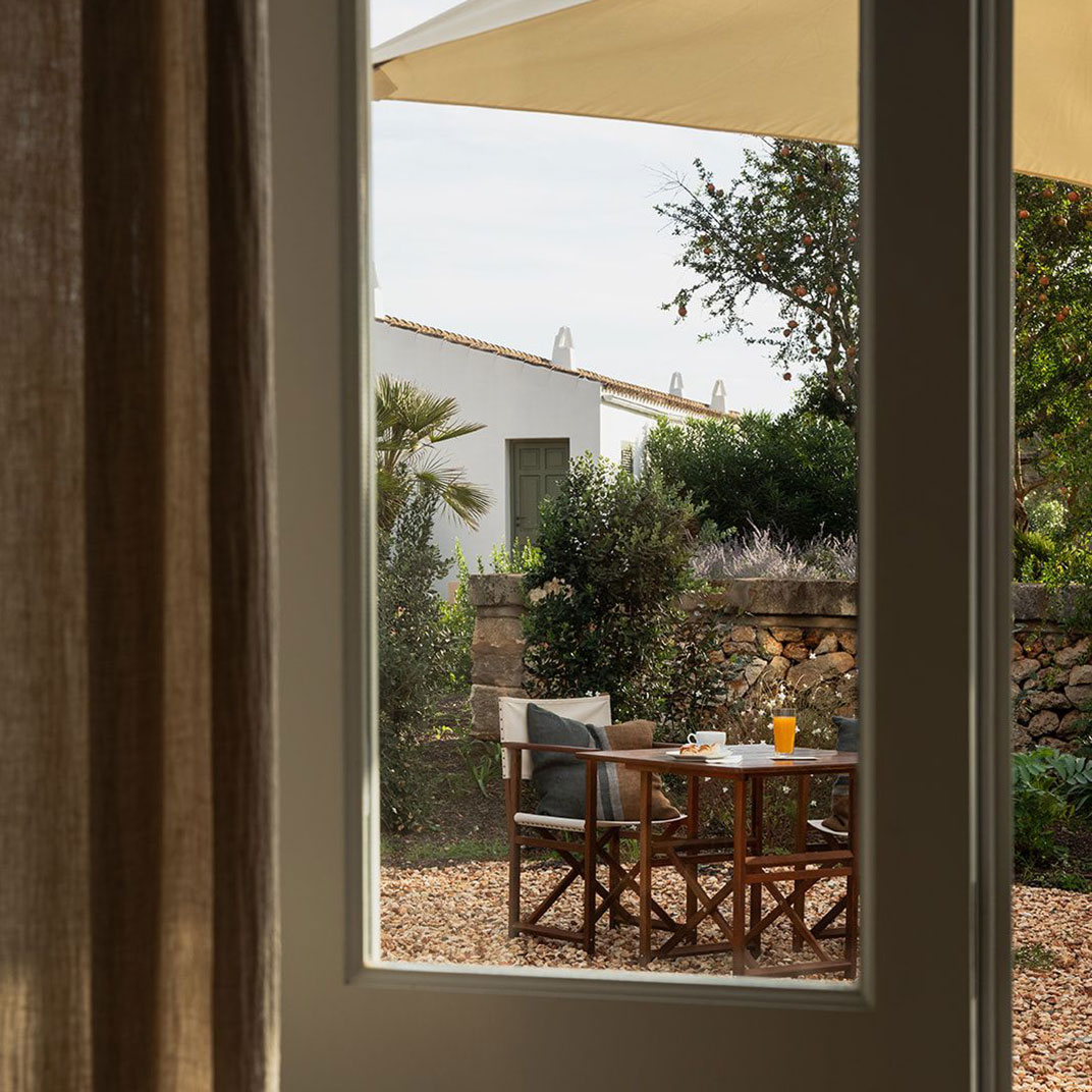 Just beyond Ciutadella, on a quiet stretch of countryside, Rural Sant Ignasi occupies a former 18th-century manor surrounded by native trees and dry-stone walls. Rooms feature natural stone, wood, and woven fibres, with garden terraces in some and wide countryside views in others. The setting is serene but rooted and everything, from the ceramics to the fabrics, reflects the island’s traditions. Several unspoiled beaches are nearby, and the historic center is just a short drive away. The estate also has a pool, tennis court, and shaded walking paths throughout the grounds.