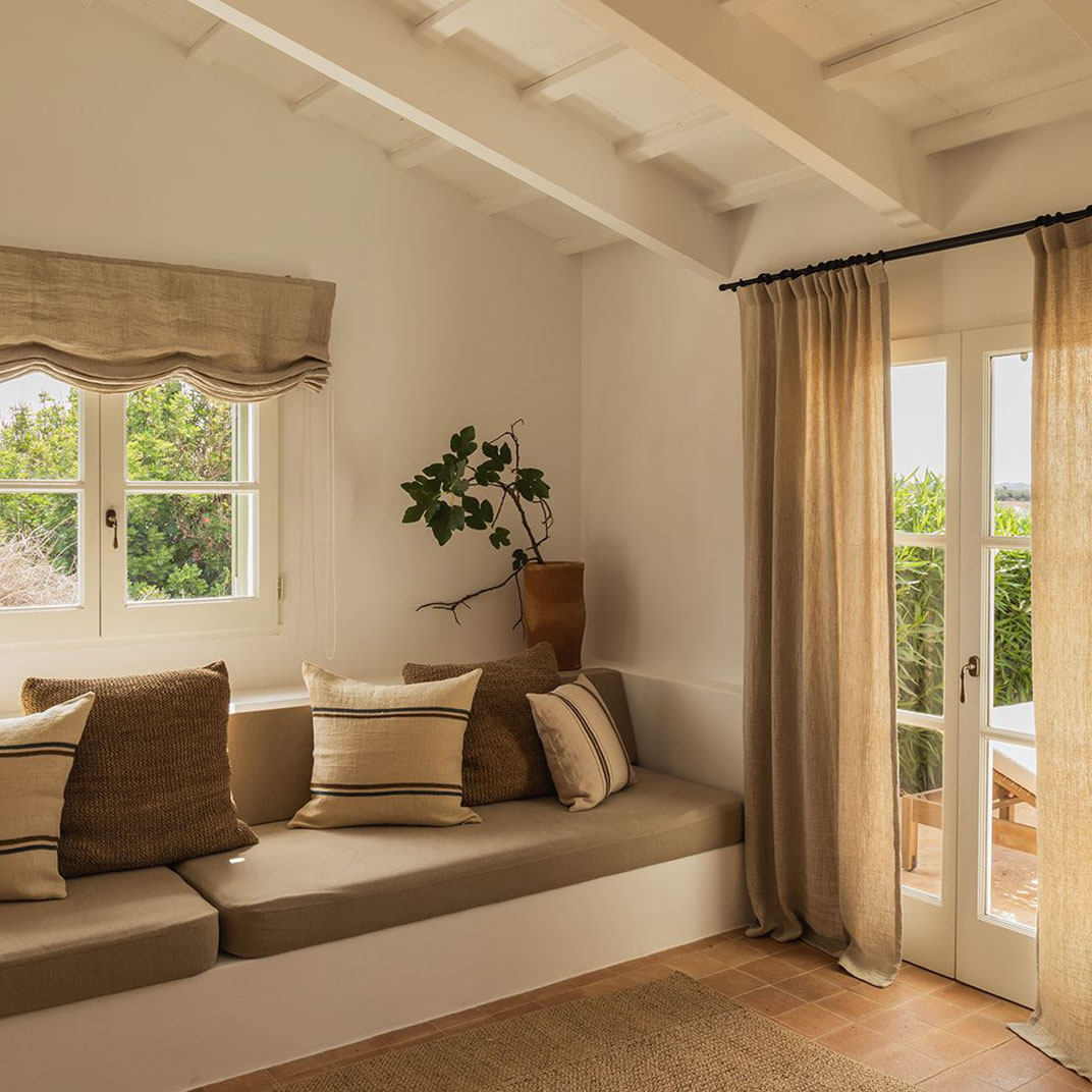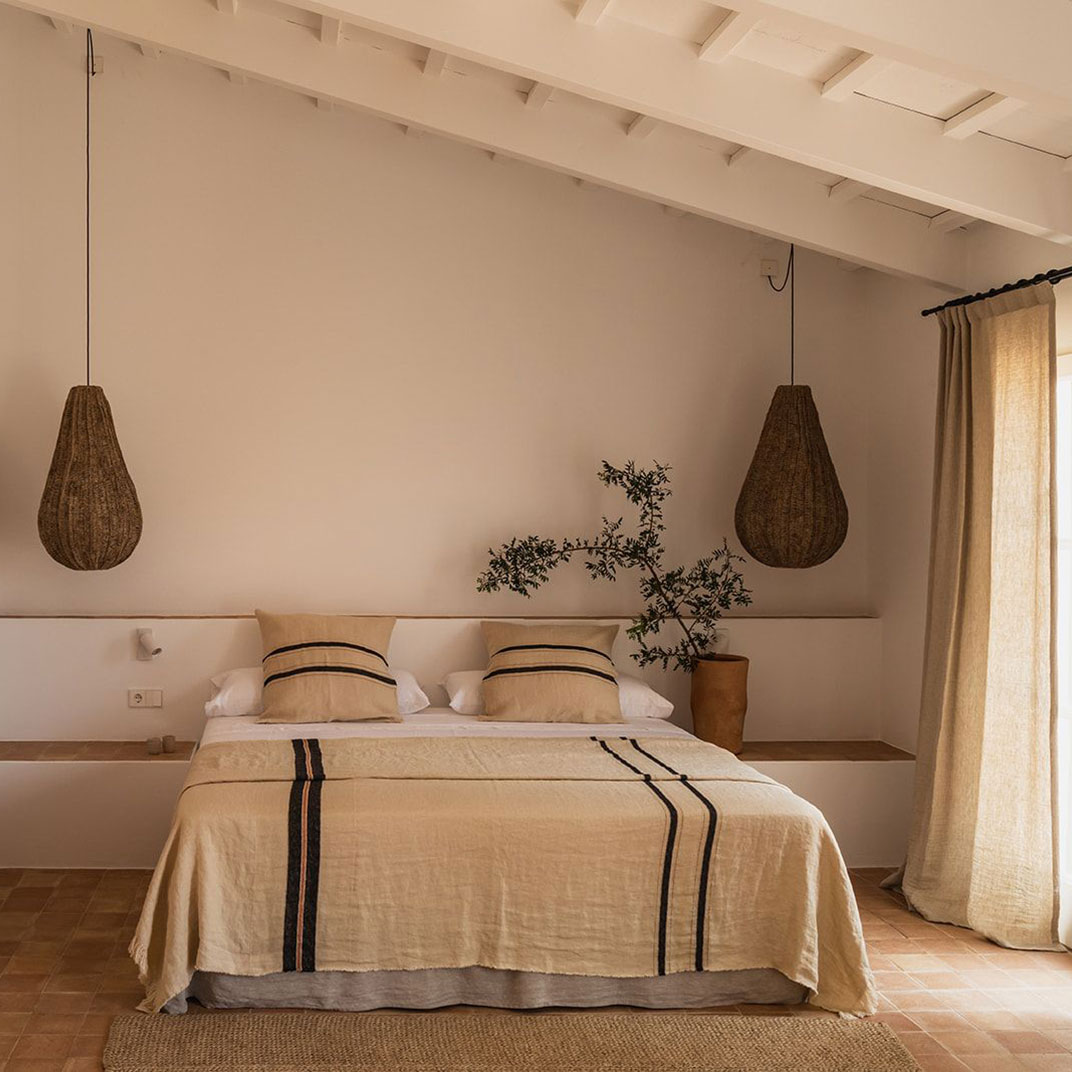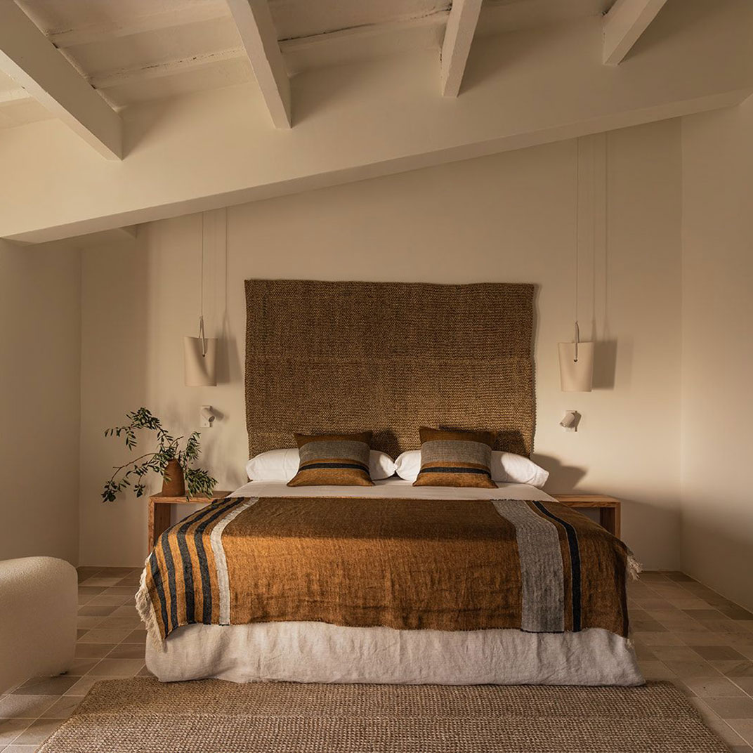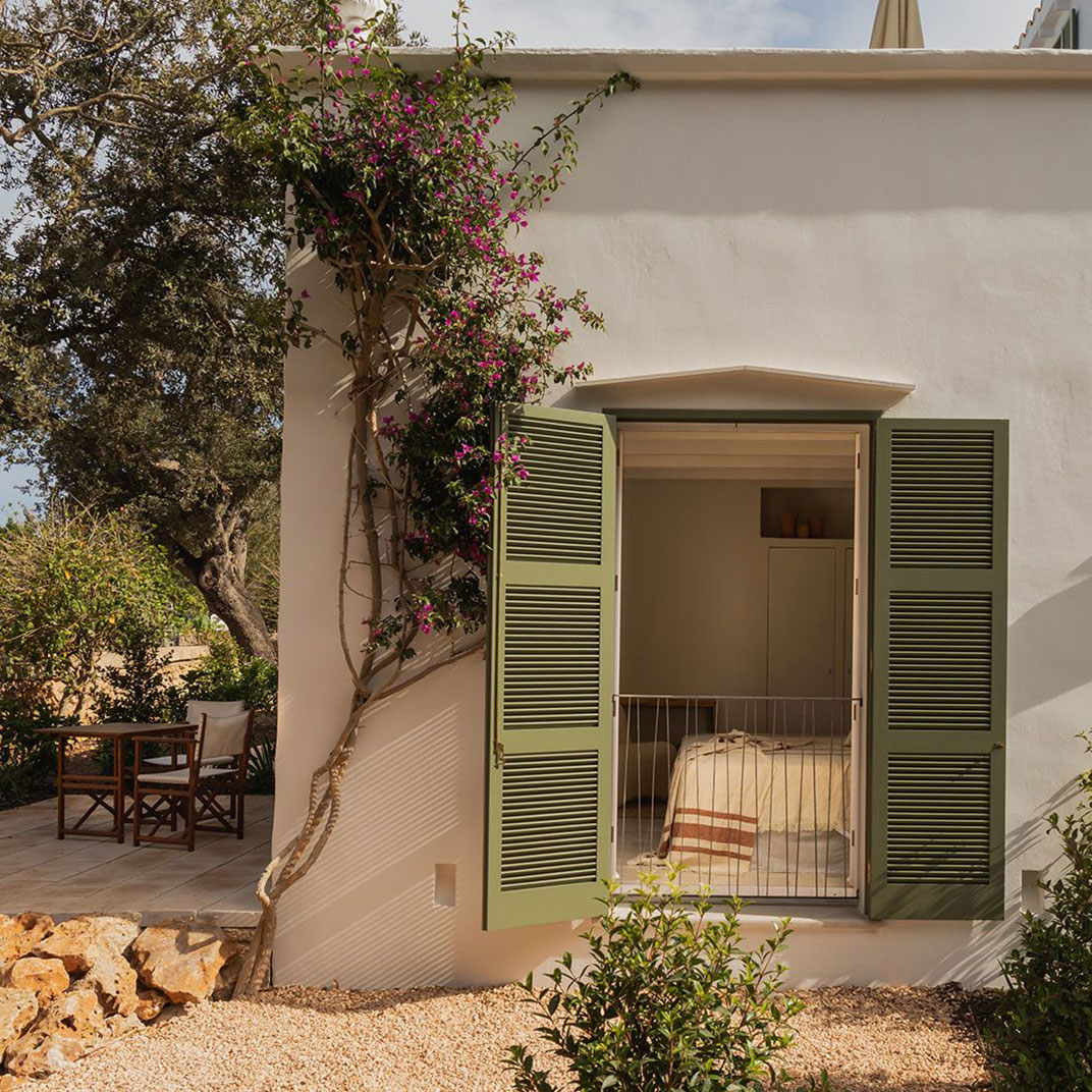 Just beyond Ciutadella, on a quiet stretch of countryside, Rural Sant Ignasi occupies a former 18th-century manor surrounded by native trees and dry-stone walls. Rooms feature natural stone, wood, and woven fibres, with garden terraces in some and wide countryside views in others. The setting is serene but rooted and everything, from the ceramics to the fabrics, reflects the island’s traditions. Several unspoiled beaches are nearby, and the historic center is just a short drive away. The estate also has a pool, tennis court, and shaded walking paths throughout the grounds.
