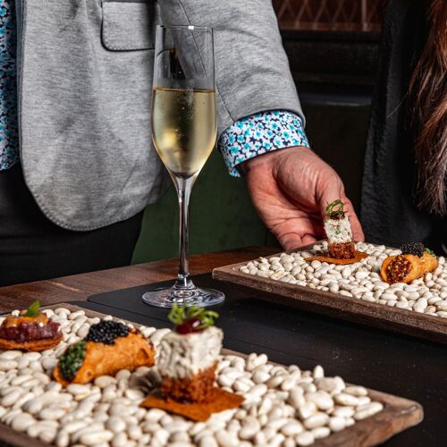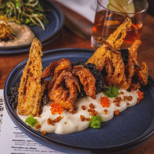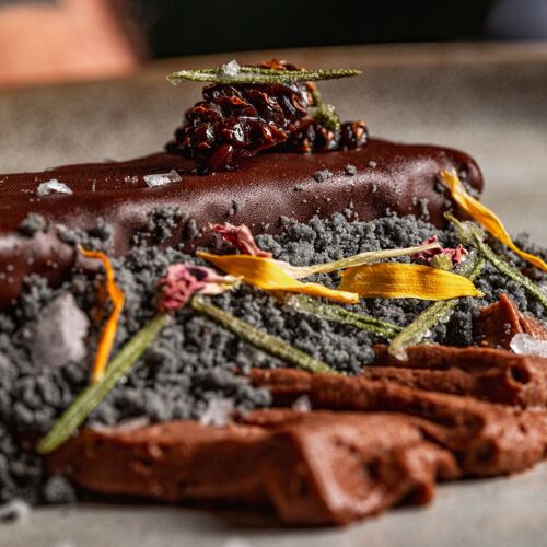 Food-wise, the cuisine is unrestrained and offers diners a taste of wide-ranging inspirations. The à la carte menu serves up the likes of a Texas-raised wagyu beef hot dog or a dish of comforting cacio e pepe. The tasting menu is an extensive affair that may combine a beef tallow and mezcal emulsion drizzled taco, a slice of beet and goat cheese lasagna, and chocolate cake dressed with spruce and rosemary.