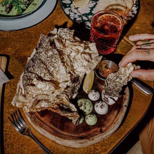 Oystera is located in the heart of Todos Santos, in a massive and rather grand building that is built on the former site of a sugar mill. The oyster bar takes center stage, with the dining space surrounding the bar. A patio out back takes advantage of the view. Chef Poncho Cadena, a Sonoran native, oversees a seafood-focused, Mexican menu spotlighting contemporary, even ambitious, cooking. As might be expected, oysters are a must. Try the half-dozen selection, with all six sourced from Baja waters and served with their version of cocktail sauce, a mignonette and Baja-style ponzu sauce. If raw isn't to your liking, try the plump, fried oysters with habanero aïoli. Beyond the bi-valves, a marinated tuna tostada or the catch of the day would round out your meal nicely.