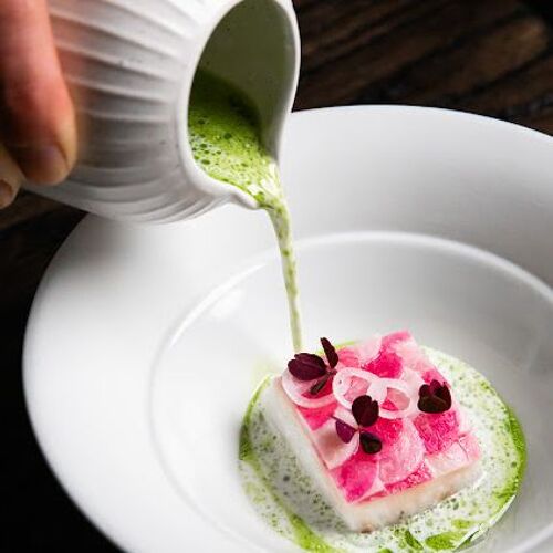 This spot in a retro drugstore packs in the crowds young and old—not unlike neighboring sister, Pizzetta 211. The big and airy space is designed for all-day dining —whether that may be coffee and wood-fired bagels during the day, or a substantial dinner (and cocktail) later. The kitchen turns out a Cal-Mediterranean menu heavy on seafood and pastas, like rustic handkerchiefs in a velvety white Bolognese sauce. Carnivores can get down on a grilled bone-in pork chop, accompanied by gently charred broccolini and nectarines. And that San Francisco must—brunch—is brilliantly executed here, with enticing eggs in purgatory or Dutch baby pancakes with fresh fruit and whipped crème fraîche.
