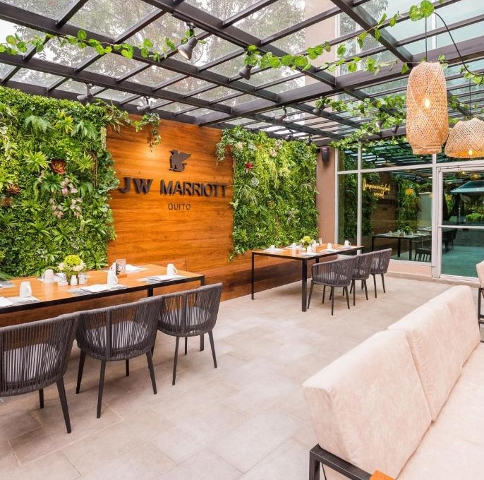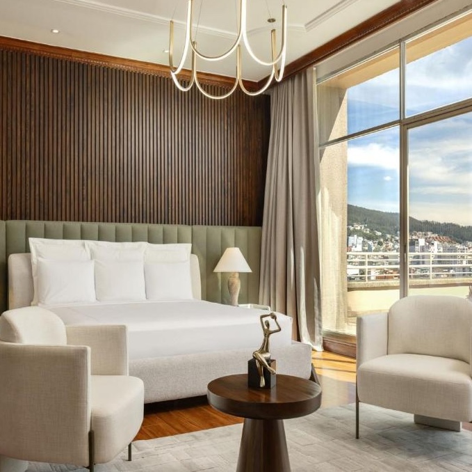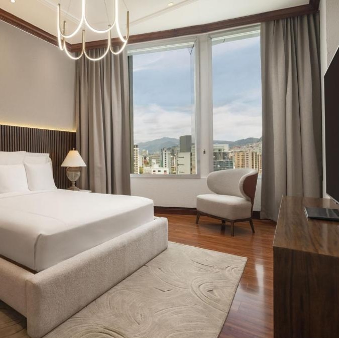 Housed in a distinctive pyramid-shaped tower on Avenida Orellana, this hotel sits close to UNESCO-listed Old Town and the lively La Mariscal district. The soaring, skylit lobby, part atrium, part greenhouse, sets an unexpectedly tropical tone for a mountain city. Rooms are generous, with expansive windows capturing views of either Quito's sprawl or the snow-capped Cotopaxi volcano. The spa incorporates indigenous wellness traditions, while the landscaped pool offers a quiet reprieve from the capital's energy. Raíces handles Ecuadorian and Latin American cooking with a contemporary touch, and there is quality sushi at Kaori for those wanting a break from regional fare.
