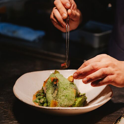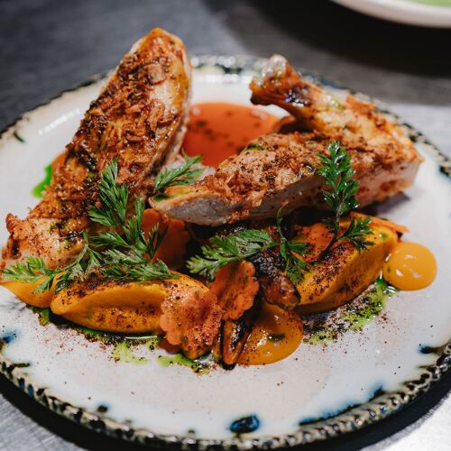 The team from Baillote strikes again! Located in a narrow, picturesque little street, this convivial restaurant boasts a dining area done out in ochre tones and with leather banquette seating, an open kitchen with a counter and a back room with a skylight. Chef Louis Fedide (who has worked at Le Gavroche in London) is winning over diners with modern cuisine that combines French ingredients with the flavours of Japan – the influence of co-owner Kazuma Chikuda makes itself felt here. He cooks his pork tenderloin, cherry jus, pommes Anna and pak choi, for example, over binchotan charcoal. Delicious lunchtime menu-carte; in the evening, enticing small plates and fine cuts of meat and fish to share.