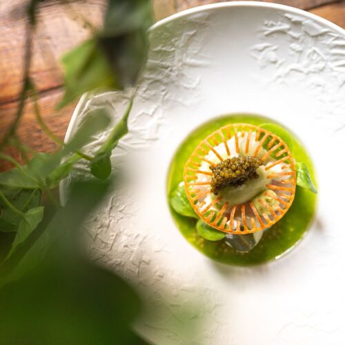 Located at the top of a converted grain-processing plant, this delightful space combines a raw, industrial aesthetic with modern design elements. It also boasts a roof terrace affording panoramic views of the surrounding landscape. With years of experience, Joppe Sprinkhuizen meticulously crafts each dish, blending timeless French cooking techniques with international influences. For example, the entrecôte, cooked rare, is served with a bitterbal (Dutch meatball) filled with rendang, alongside beans cooked in red curry and lemongrass, plus a peanut cream and a red berry cream providing sweet and fruity nuances. The set menus are fantastic!