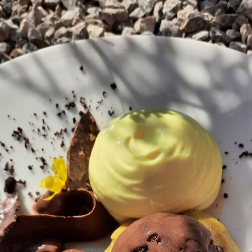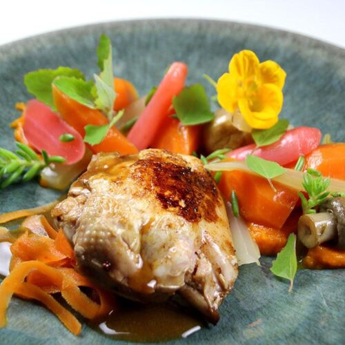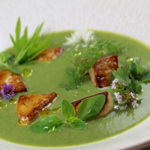 The chef proposes neoteric, distinctive cuisine, whose mainstay is wild herbs, which he learned to know through a local herb picker. Goosefoot, wild lemon balm, purslane, mugwort... The culinary score is poetic and rich in flavour, illustrated by Ventoux pork with helichrysum-flavoured poichichade. Consider us smitten!