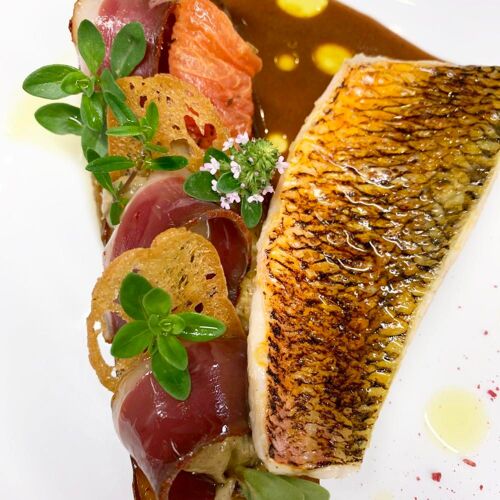 Before setting up shop in San Ciprianu, Italian-born chef Sébastien Salamon clocked up stints in some top establishments (Guy Savoy, Le V). The technical brilliance and precise seasoning on display in his spider crab cappelletti, in particular, are testament to this experience. The grilled escalope of foie gras with flaky brioche and cherry tartare is a real treat. With direct links to the terroir (local fish, Bonifacio market gardens, Corsican veal), the short menu features absolutely top-notch contemporary cuisine – to be savoured in the magnificent setting of a spacious, light-filled veranda.