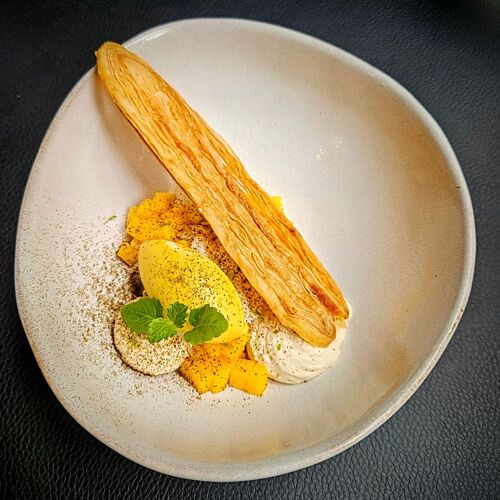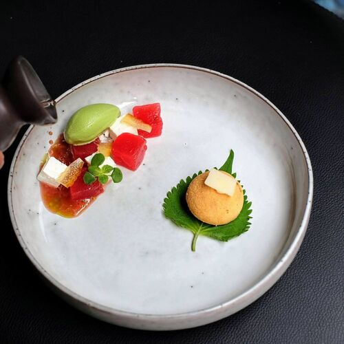 After ditching the world of finance to enrol in the Ferrandi Culinary School, the chef went on to hone his skills in a variety of establishments (including the French Ministry of Foreign Affairs and L'Épi Dupin). He then went it alone and opened this restaurant. With its vintage vibe and open kitchen, the chef devises a surprise set menu that is unabashedly creative and showcases carefully selected ingredients: free-range meat and poultry, line-caught fish from small boat fishing, citrus fruits, herbs and spices, all sourced as locally as possible.