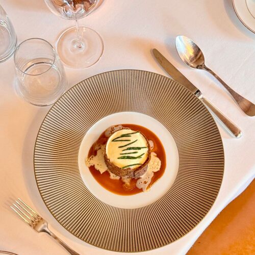 "Faithful to our guidelines, which advocates "progressive terroir", as much as possible we work with the small producers of our region – local fish, vegetables, herbs, whole animals, while favouring the finest produce. Quality, tasty and as natural as possible. The chef drives in a 100% electric car and fetches certain supplies himself, such as vegetables grown in Biscarrosse. We plan to create a pig farm in order to recycle our green waste."