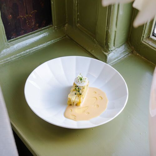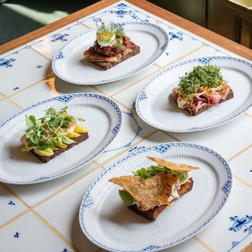 Not far from Nyhavn’s picturesque canals sits Restaurant Anton, an impressive 18th-century building that was once an exclusive confectionery store. A restaurant since 1915, it’s now run by the owners behind Marv & Ben, and its appealingly retro dining room still boasts its original murals, along with blue-and-white-tiled tables and Royal Copenhagen tableware. The modern Danish cooking comprises largely of smørrebrød with a twist at lunchtime – such as herring with sour cream, egg, onion compote and tomato – while dinner sees the likes of fried turbot with sunchokes and a gooseberry vinaigrette.
