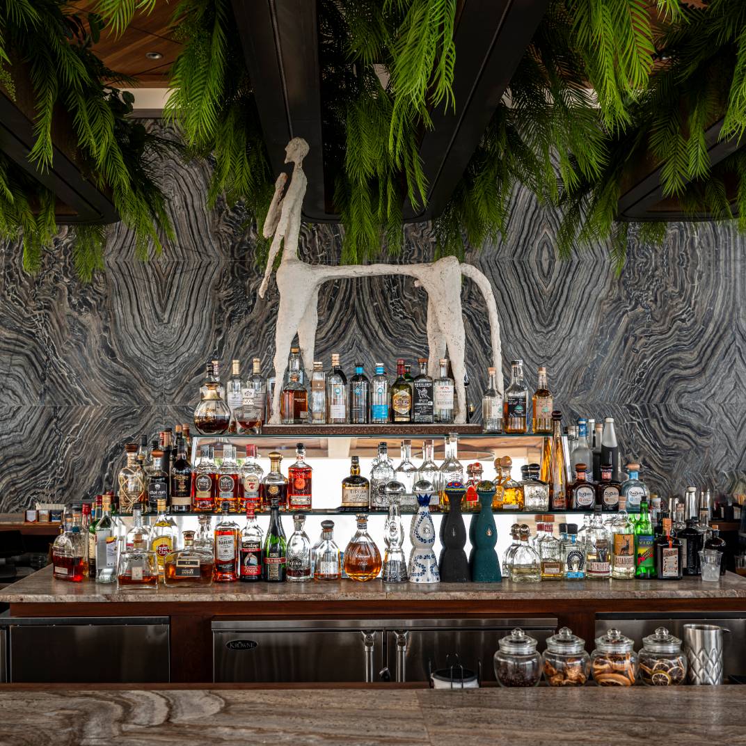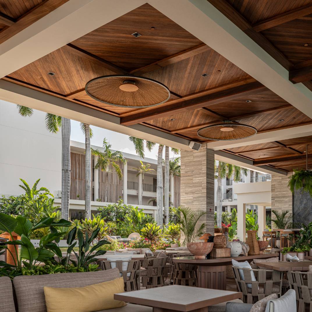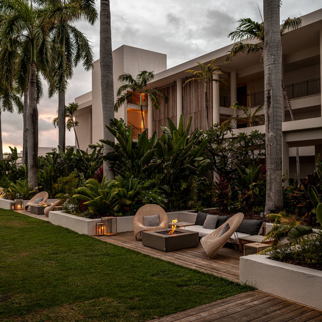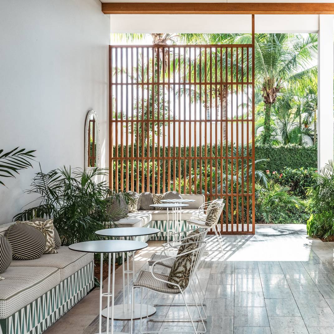 Le design du resort a été confié à la très médiatique Kelly Wearstler, déjà à la manœuvre derrière les hôtels californiens de la marque, pour un résultat toujours aussi éclectique mais fatalement moins exubérant. Globalement planes et claires, les surfaces sont ainsi ponctuées de pièces de mobilier aux courbes douces et de pièces d’artisanat aux formes hallucinantes, faisant souffler le chaud et le froid entre deux rangées de palmiers. La déambulation ne s’arrête pas là, puisqu’en resort grand luxe, le Viceroy Anguilla aligne les bassins, les lounges, les tables fusion et les chaises longues comme d’autres, moins chanceux, alignent les serviettes de plage.
