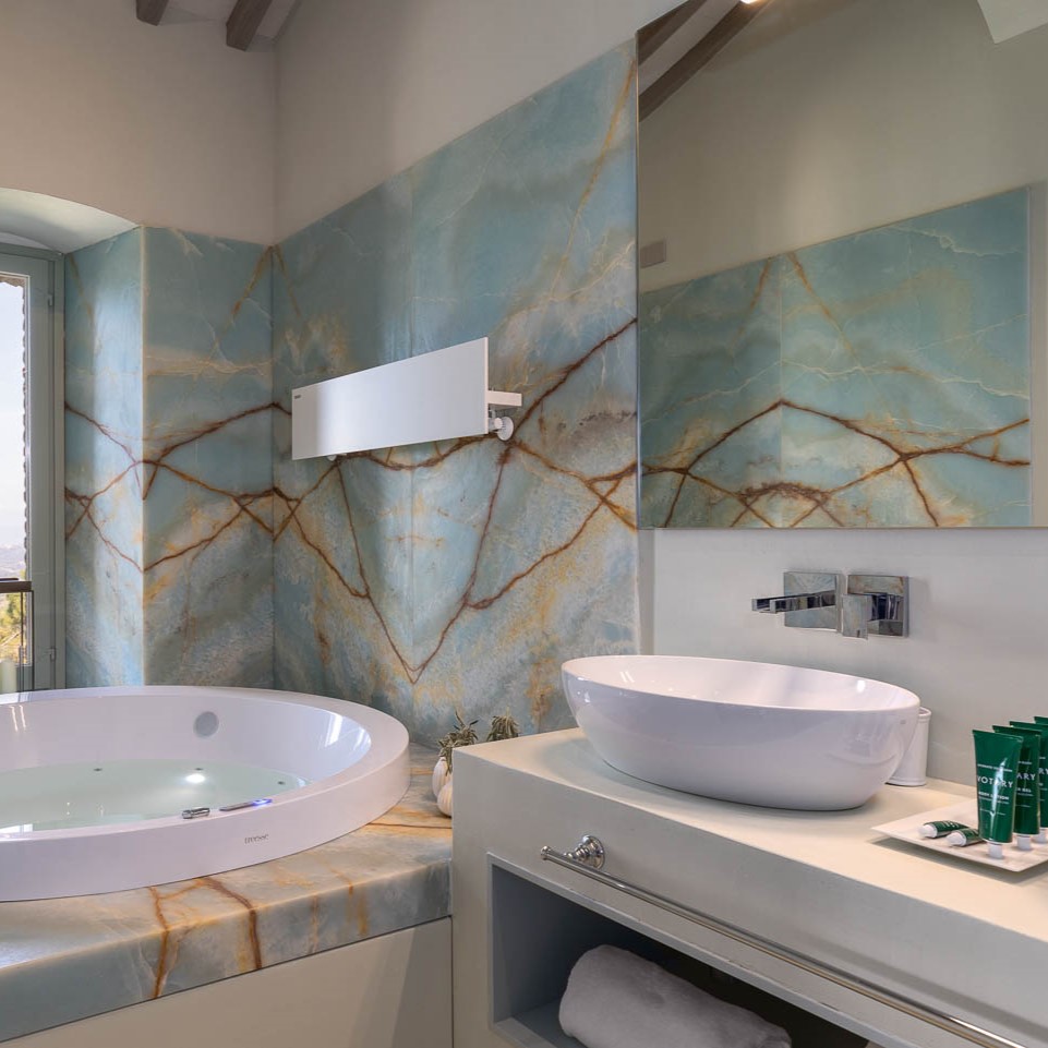 Seul au sommet d’une colline, le spa principal de l’établissement joue également la carte de l’intimité puisqu’on le réserve pour toute la durée des soins. Quant au restaurant, Essenza, il assure le lien entre chacun des éléments du complexe grâce à une carte gastronomique savamment composée qui s’appuie sur des produits locaux méticuleusement sélectionnés.