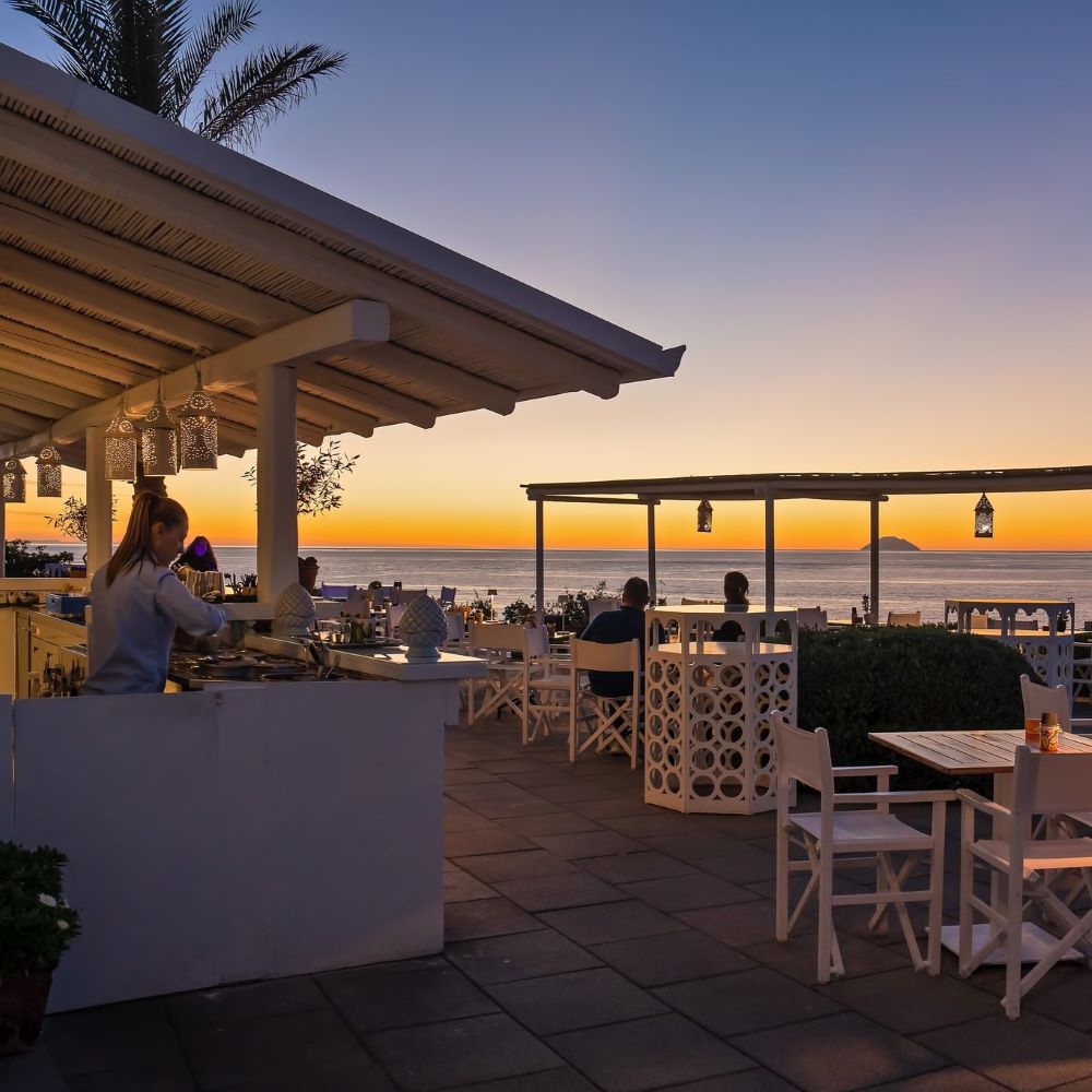 Le nom Sea & Spa ne sort pas de nulle part : à votre disposition, pas moins de trois plages de sable noir inoubliables, toutes cerclées de vues saisissantes, et un spa somptueux. Quatre restaurants vous éviteront de mettre les pieds en ville : Il Cappero et I Tenerumi sont tous deux étoilés au Guide MICHELIN, un cas unique sur toute la scène hôtelière italienne ; L’Arcipelago, offre un cadre plus décontracté, et I Grusoni est le café de la piscine. Leurs cuisines mettent à l’honneur les saveurs siciliennes et, naturellement, les produits de la mer. L’hôtel organise même des cours de cuisine au cas où vous aimeriez rapporter quelques recettes à la maison.