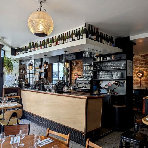 Ambiance joyeuse et bon enfant dans ce bistrot de quartier du 20e. Entouré de vins nature exposés sur une étagère, on attaque dans la bonne humeur les assiettes bien léchées du chef : chou-fleur, sauce hareng, noisette et huile verte ; duo de betteraves rôties, lard de Colonnata et crème de chèvre cendré. Une jolie balade gourmande de saison à prix doux au déjeuner.