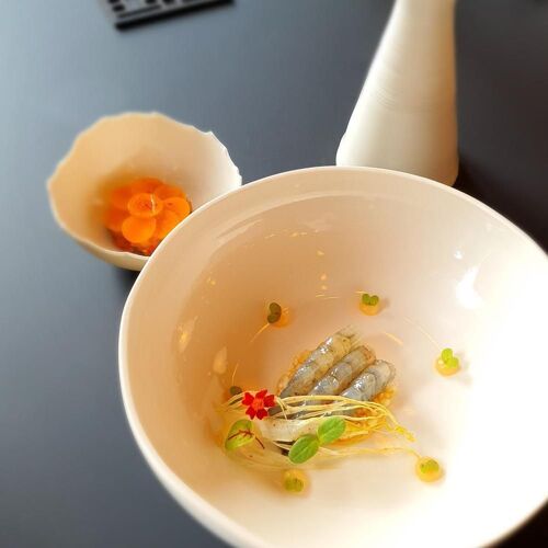 À 5 minutes du centre-ville, préparez-vous à un choc visuel, celui d'un bâtiment design tout en métal, béton et verre face... à la forêt ! Aux manettes de ce vaisseau, le chef Guillaume Veyssière signe une cuisine contemporaine à la technique impeccable. Cette architecture qui lui sert d'atelier d'artiste lui va comme un gant : ce cuisinier est doté d'un sens indéniable de la mise en scène, des amuse-bouches aux desserts (jolie composition sucrée aux cèpes et persil). Il s'impose aussi de louables contraintes locavores qui dopent sa réussite, à l'image de cette déclinaison d'escargots gros-gris de Guitinières, en petit ragoût et cromesquis. Au déjeuner, plaisant menu de saison au bistrot Forêt des Sources.