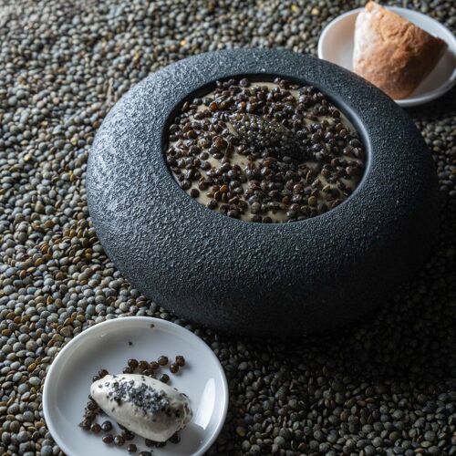 Au cœur du Périgord blanc, cette maison traditionnelle en pierre dissimule un lieu contemporain séduisant qui entend valoriser les artisans – avis aux amateurs de belle coutellerie ! – et les produits locaux : herbes aromatiques du jardin, légumes de Chantérac, esturgeon de Neuvic, etc. Depuis sa cuisine ouverte, Louis Festa, jeune chef au bon parcours, réalise un menu unique surprise modulable en fonction de l'appétit. Les assiettes ambitieuses et spontanées sont inspirées par la saison à l’image des lentilles vertes du Puy préparées en trois façons, paleron de bœuf limousin de Ribérac au barbecue japonais.